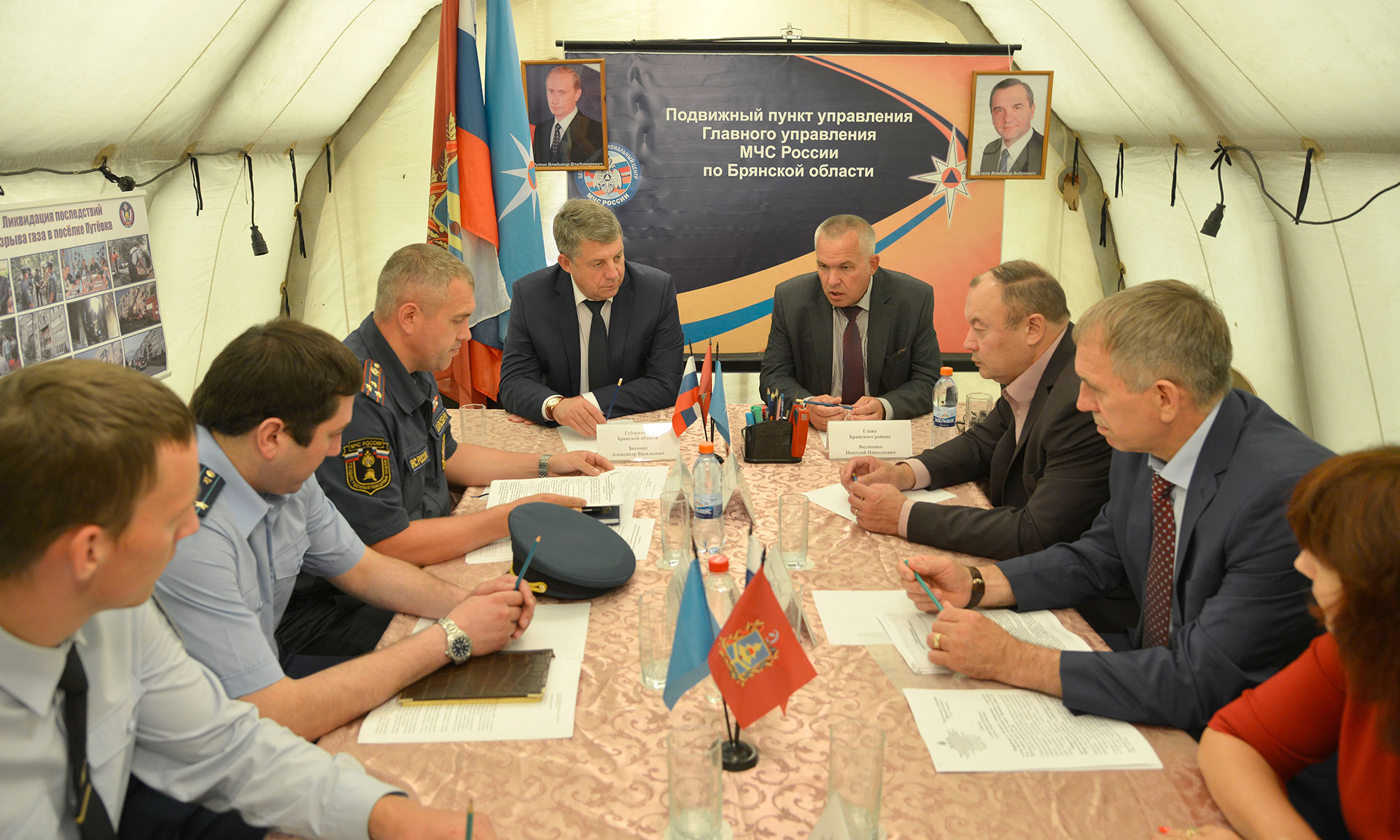 Обсуждались результаты ликвидации последствий взрыва бытового газа, который произошел около 19 часов 23 июля в многоквартирном доме № 27 по улице Садовой в поселке Путевка. В заседании приняли участие заместители Губернатора Юрий Филипенко и Юрий Мокренко, заместитель начальника Главного управления МЧС России по Брянской области — начальник управления надзорной деятельности и профилактической работы Руслан Карасев, представители органов исполнительной власти Брянской области, Брянского района, Снежского сельского поселения, сотрудники прокуратуры Брянского района, МЧС и МО МВД России «Брянский».