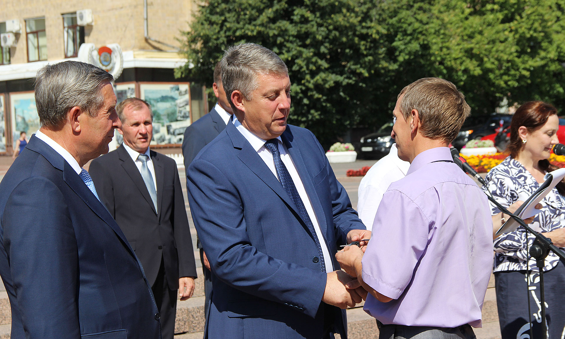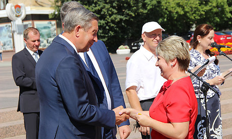 — Я еще раз поздравляю всех вас с наступающим 1 сентября и хочу сказать огромное спасибо за ваш труд, за то, что вы готовите будущее нашей страны! — сказал Губернатор и вместе с председателем Брянской областной Думы Владимиром Попковым вручил ключи от школьных автобусов директорам школ.