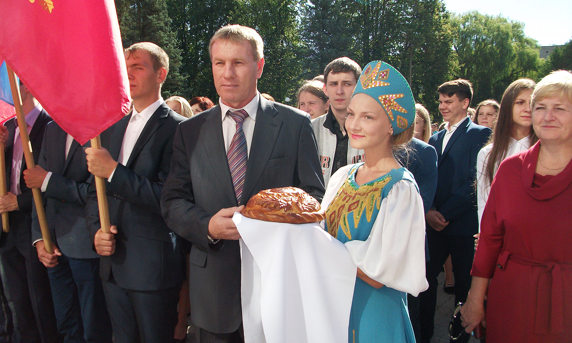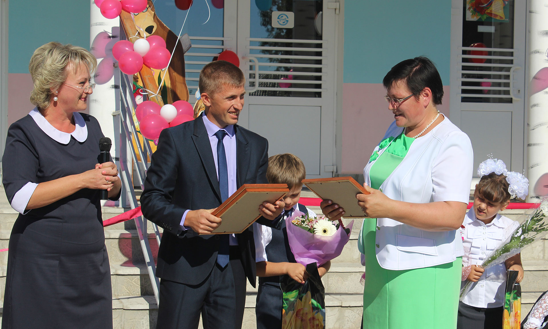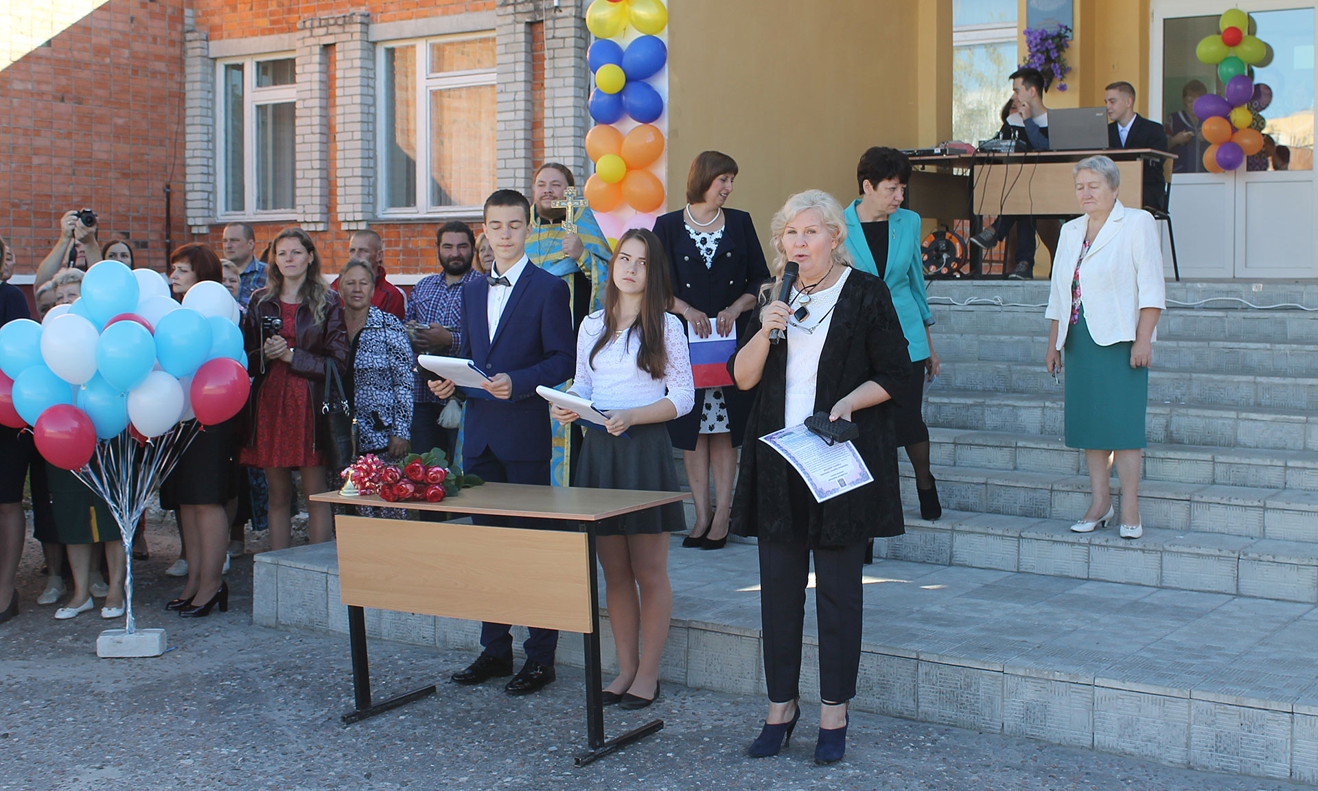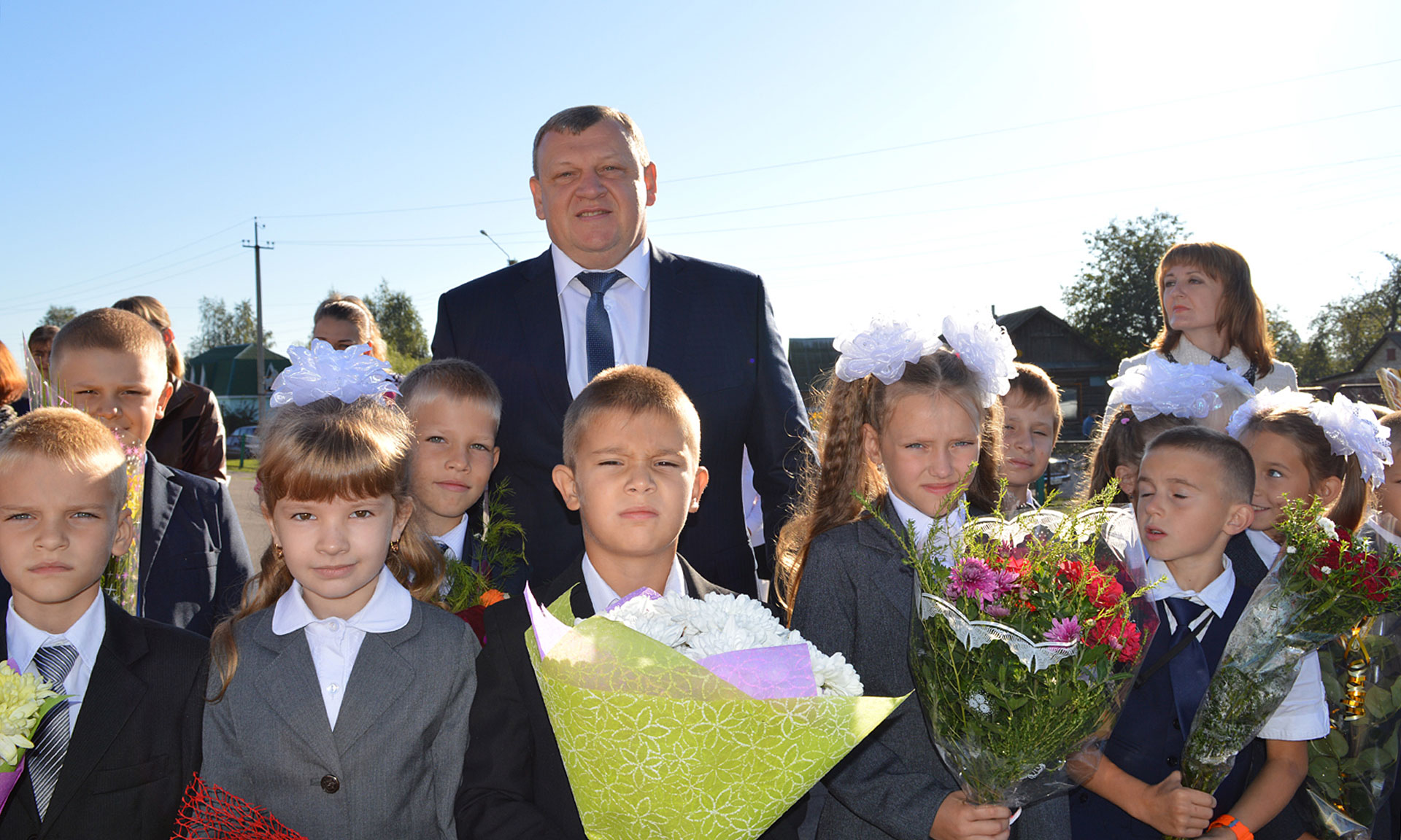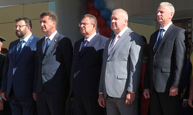 Учеников средней общеобразовательной школы № 1 города Брянска поздравили главный федеральный инспектор по Брянской области Леонид Соломатин и глава Брянской городской администрации Александр Макаров.
