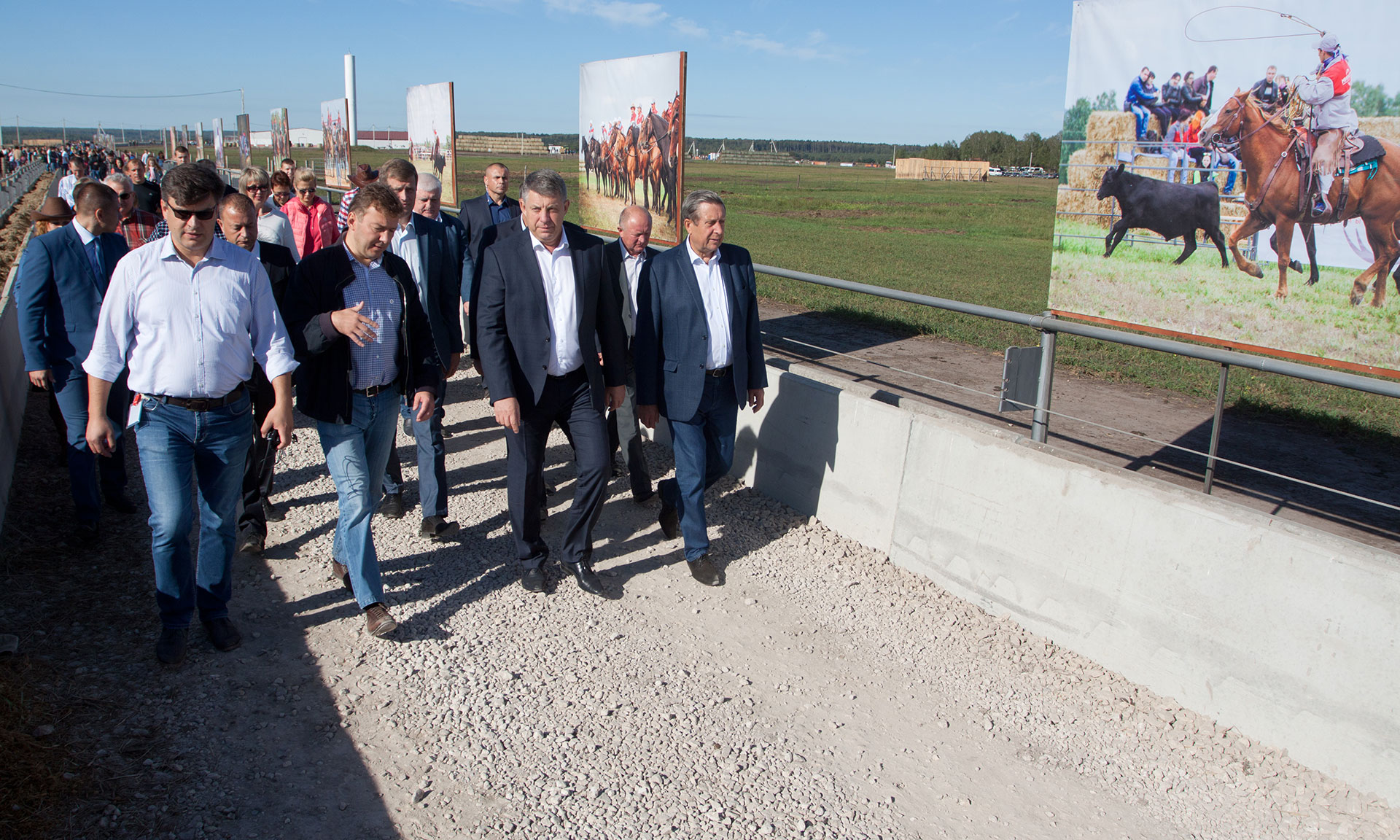 Непосредственно перед торжественным открытием «Русского родео» Губернатор Александр Богомаз, председатель Брянской областной Думы Владимир Попков, прокурор Брянской области Александр Войтович, начальник УФСБ России по Брянской области Сергей Блинов, начальник Пограничного управления ФСБ России по Брянской области Сергей Станкевич, заместители Губернатора Галина Петушкова, Николай Щеглов, Александр Резунов в сопровождении президента АПХ «Мираторг» Виктора Линника и генерального директора ООО «Брянская мясная компания» Сергея Куликовского осмотрели ферму «Леденево». Затем Александр Богомаз обратился к участникам праздника:
