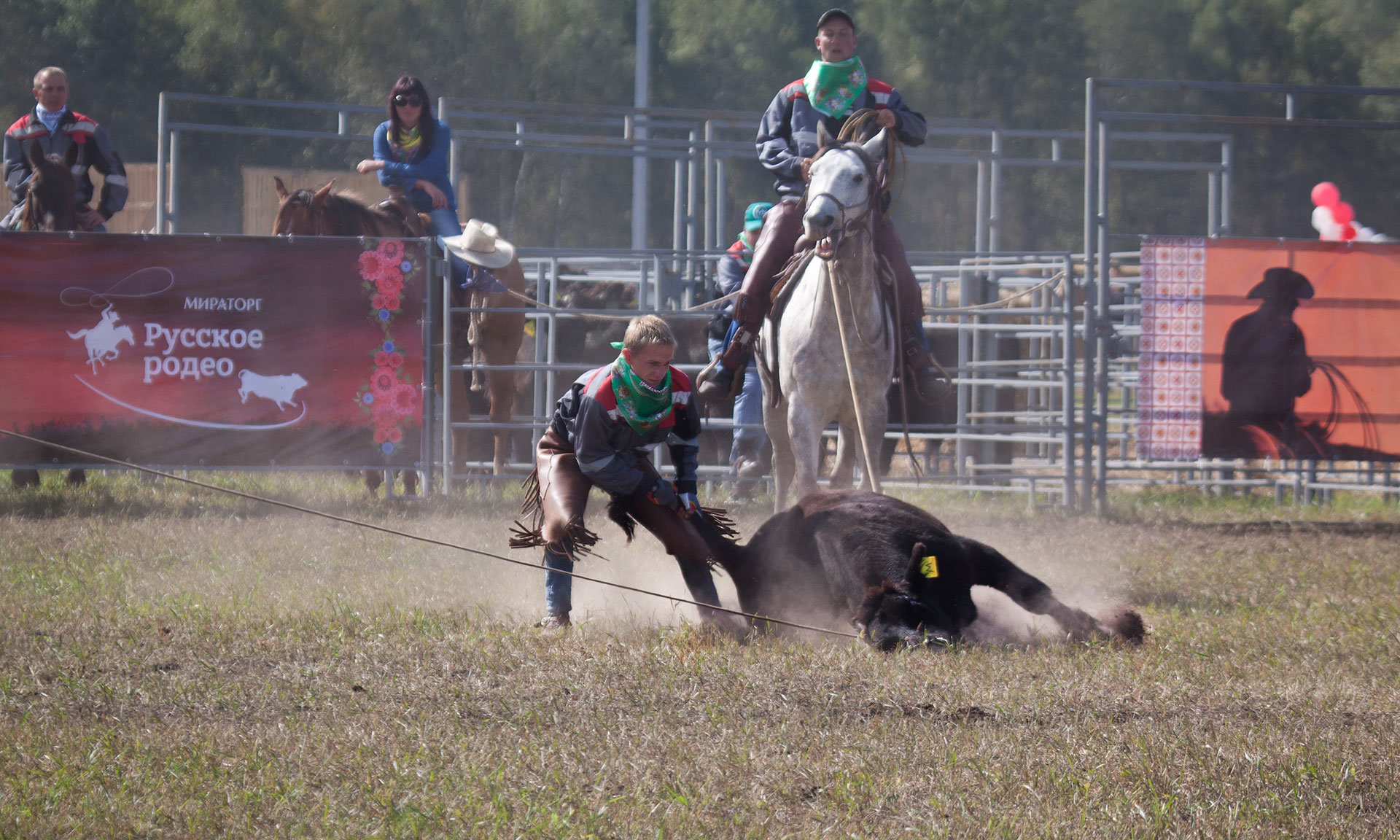 Главным действом стали захватывающие состязания команд ковбоев на большой арене. В «Русском родео» приняли участие команды Брасовского, Рогнединского, Трубчевского, Климовского, Мглинского районов, команда фидлотов, ковбои из Калининграда. Они соревновались на таких этапах, как «Командная ловля на лассо», «Эстафета на лошади», «Погрузка в трейлер». Их поддерживали болельщики — коллеги из Брянской области, филиалов компании из Тулы, Москвы, Калуги.