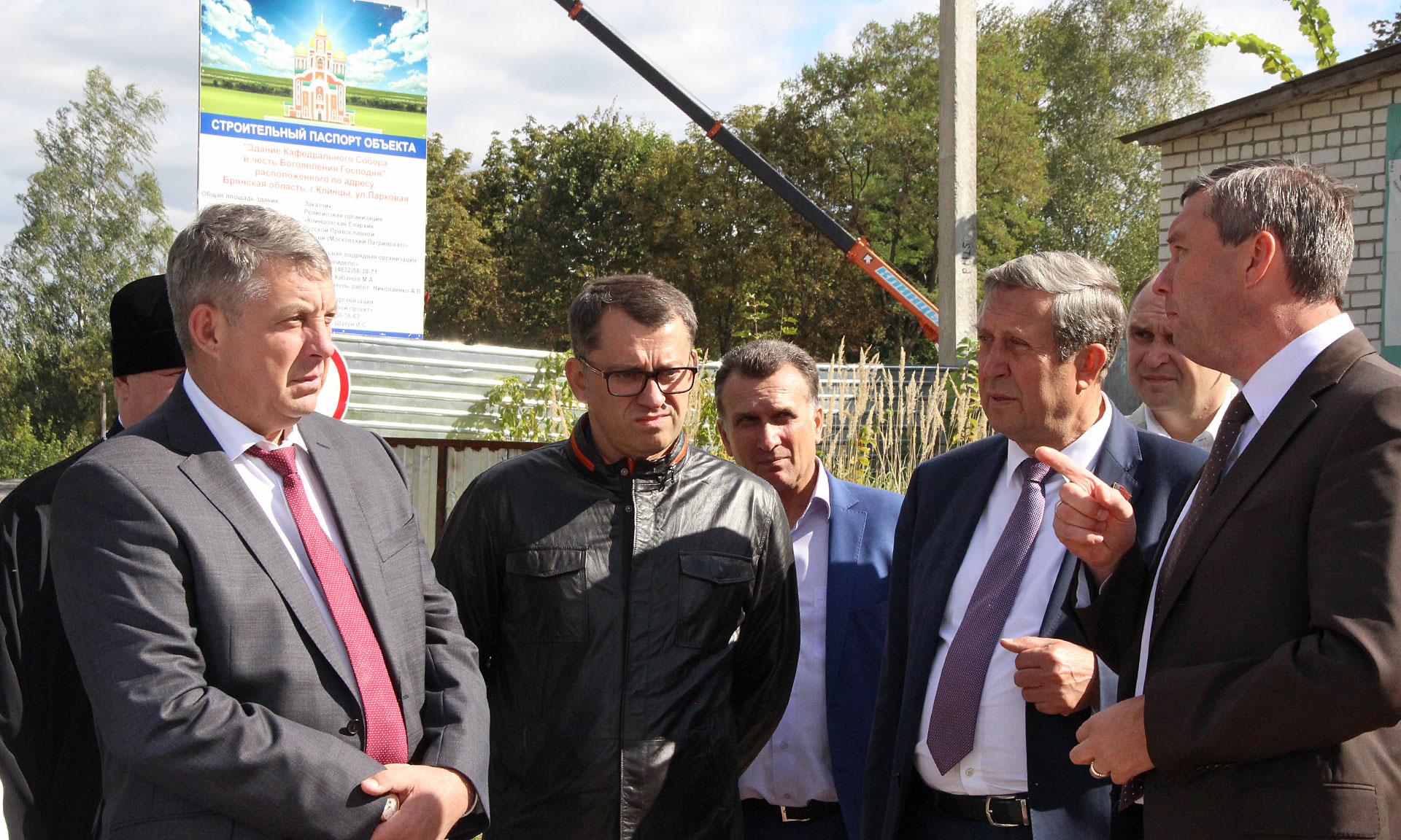 14 сентября Губернатор Александр Богомаз, председатель Брянской областной Думы Владимир Попков, заместитель председателя правления — руководитель аппарата Правления ПАО «Газпром» Михаил Середа, Епископ Клинцовский и Трубчевский Владимир, руководители г. Клинцы, директор ООО «Стройдело» Михаил Кабанов посетили строительную площадку Клинцовского Кафедрального Собора.
