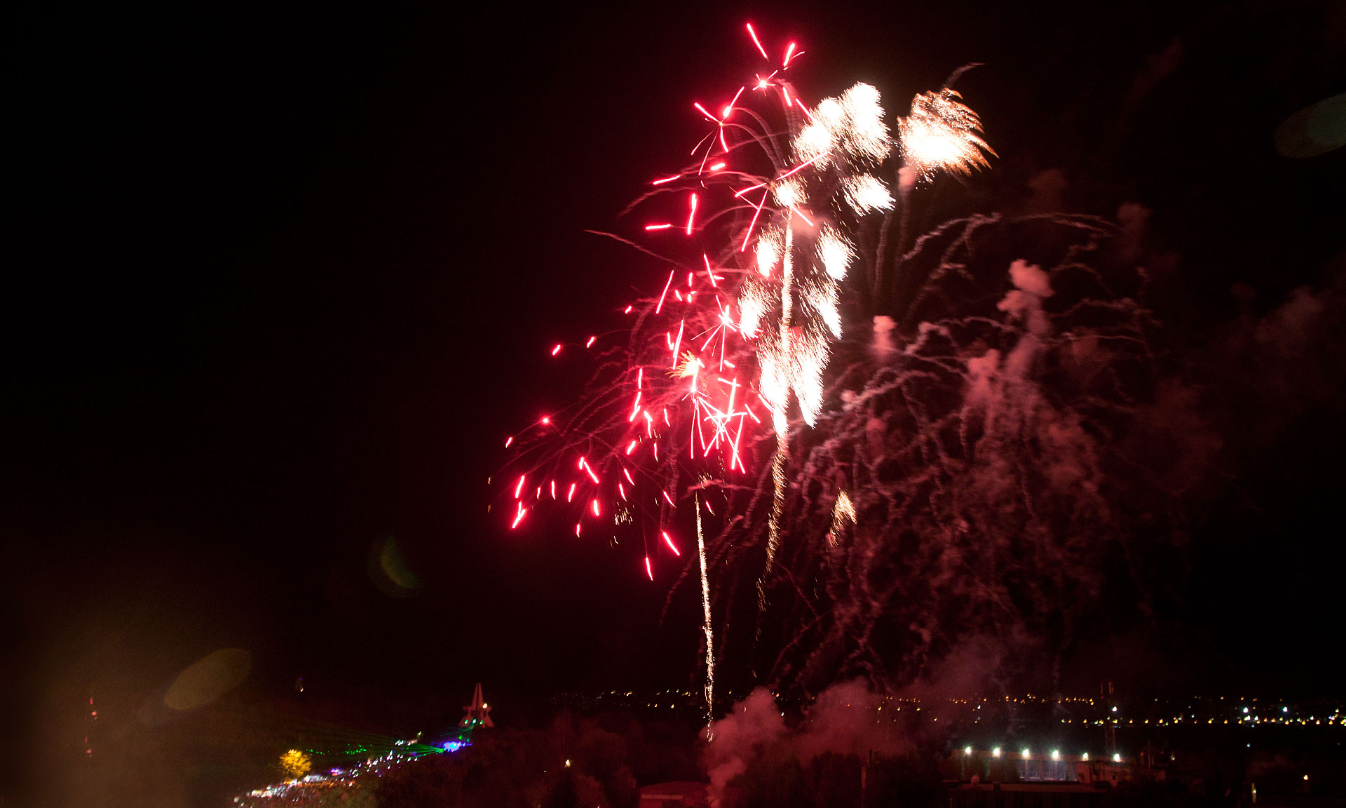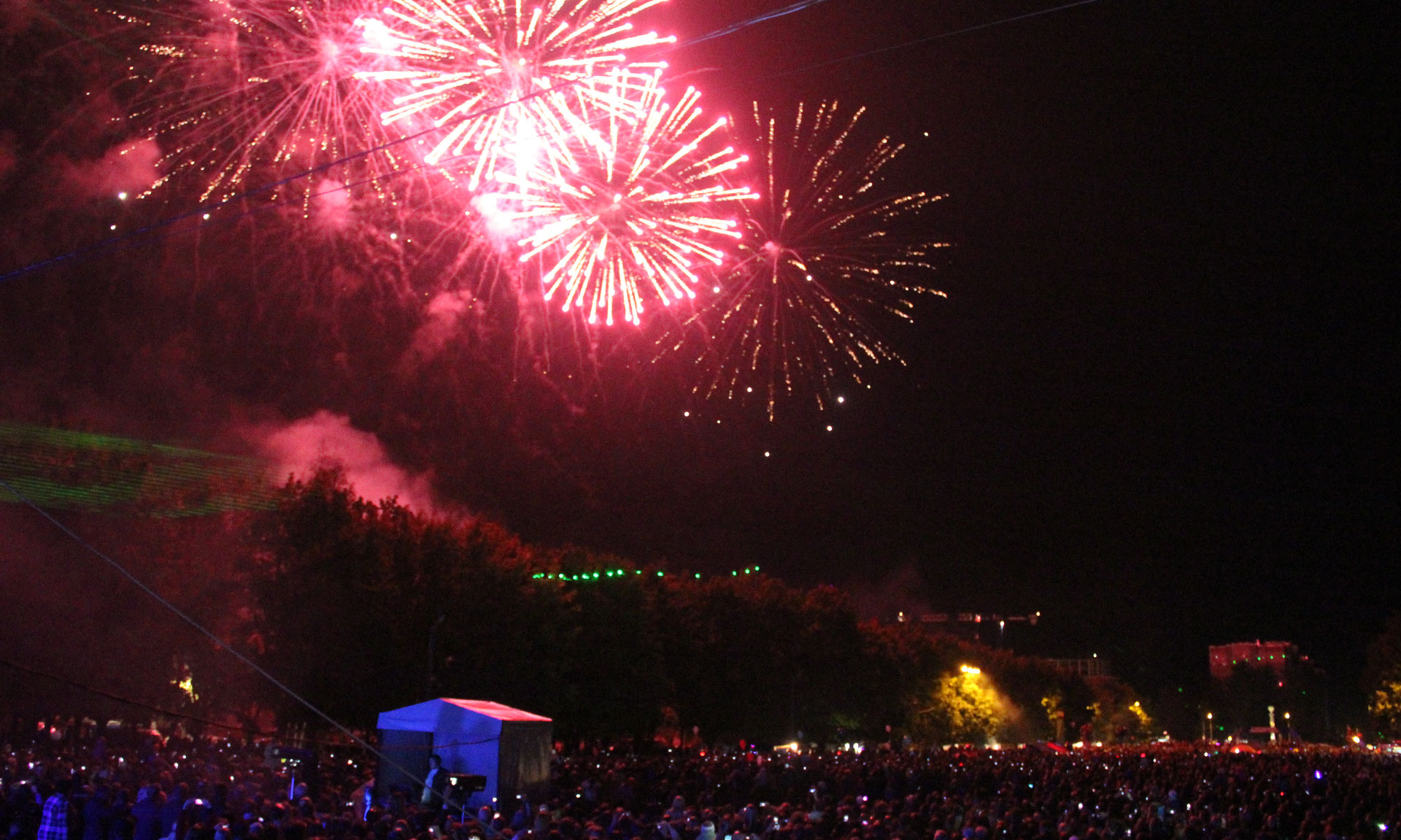 В 21.30 вспыхнул яркий праздничный фейерверк «Славься, древний наш Брянск!». Это время было выбрано неслучайно. 73 года назад в столице нашей Родины в честь доблестных воинов, освободивших города Брянск и Бежица, прогремел праздничный салют. Москва салютовала доблестным войскам Брянского фронта 12 артиллерийскими залпами из 124 орудий.