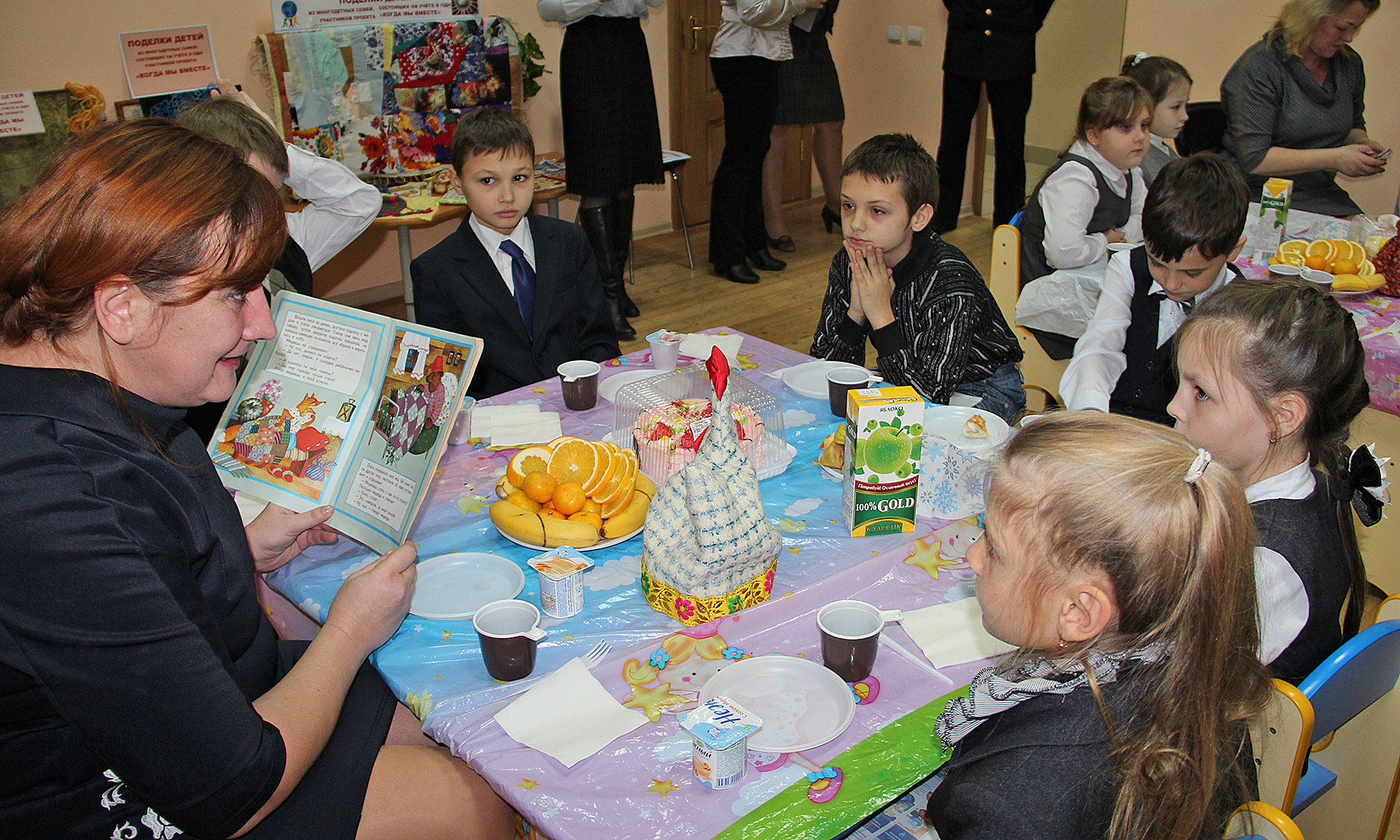 Затем все — взрослые и дети сели тесными кружками за столы, где по очереди, передавая друг другу книги, читали сказки. Ведь сказка — это основа морали и культуры нации. Именно читая сказки маленький человек, взрослея, познает, что такое — хорошо, а что такое — плохо.