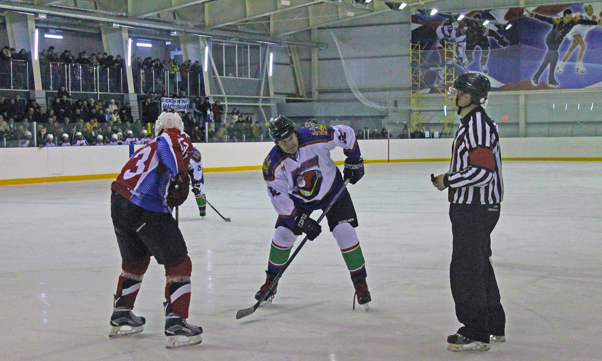 Хоккейный матч в Ледовом дворце стал по-настоящему жарким. Спортсменов поддерживали болельщики, которые специально пришли полюбоваться красочным спортивным событием. Трибуны были заполнены, многие наблюдали за спортивным поединком стоя.