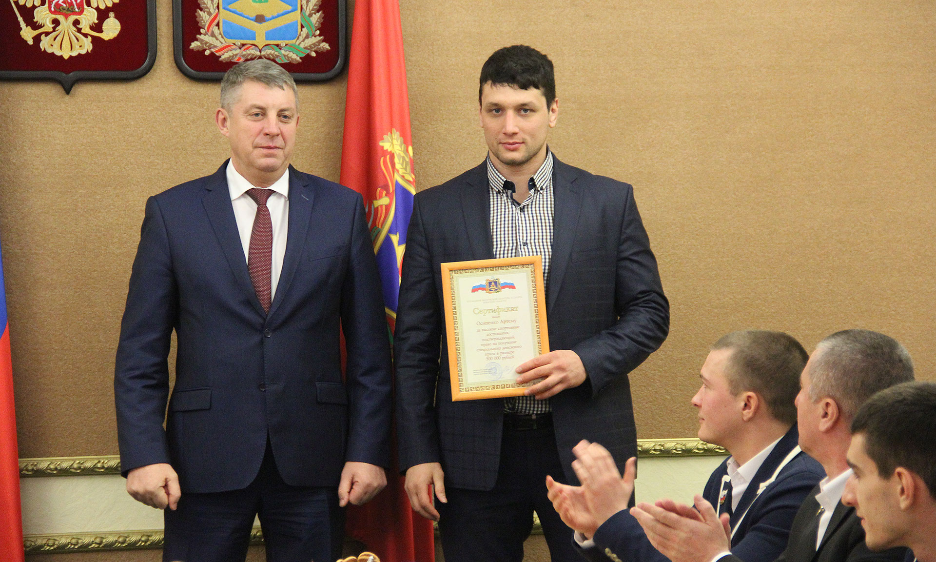 — в размере 500 тысяч рублей — заслуженному мастеру спорта России, пятикратному чемпиону мира по самбо Артему Осипенко;