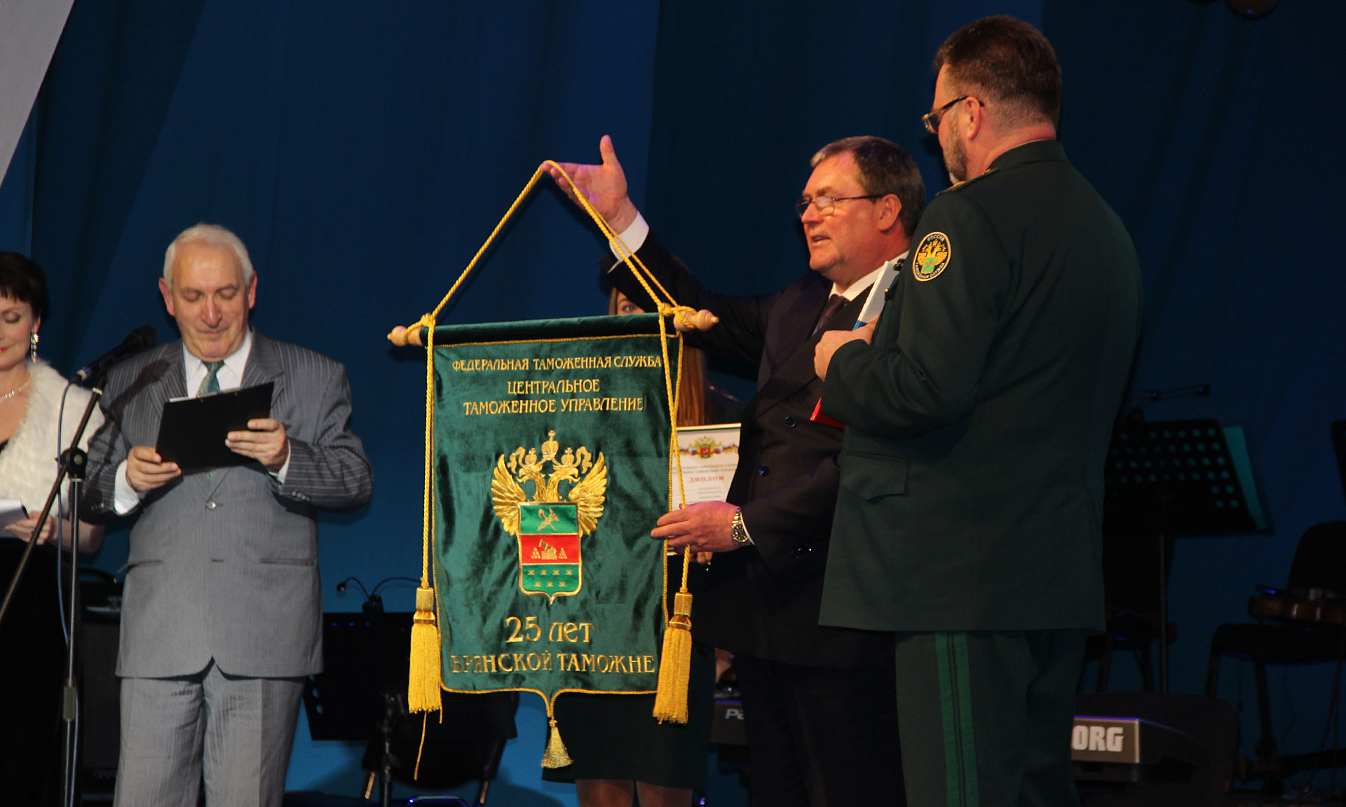 Начальник Центрального таможенного управления Сергей Прусов вручил коллективу таможни вымпел в честь юбилея с момента образования Брянской таможни: