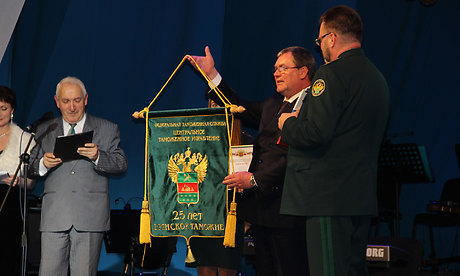 — Сегодня ваше ведомство играет важную роль в укреплении экономической безопасности страны, защите ее национальных интересов, наполнении федерального бюджета. Ваш юбилей — прекрасный повод сказать слова благодарности всем, кто предан своей профессии. Знания, опыт, высокие моральные качества, мужество — вот бесценный капитал, который является гарантией успеха вашего дела. Сердечные поздравления ветеранам таможенной службы, которые передают свой профессиональный опыт и житейскую мудрость молодым сотрудникам.