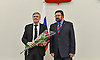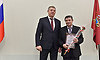 Михаил Калашников вручил награды собственному корреспонденту «Российской газеты» в Брянской области Александру Федосову и председателю совета директоров компании «Брянские кабельные сети» Игорю Грачеву.