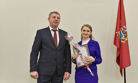 Глава региона вручил заслуженные награды лучшим представителям отрасли печати. За многолетний и добросовестный труд в сфере печати Брянской области и в связи с профессиональным праздником Почетными грамотами Губернатора Брянской области награждены начальник отдела редакции газеты «Авангард» Климовского района Антонина Ермакова и ответственный секретарь ГБУ редакции газеты «Стародубский вестник» Елена Лукьянова.
