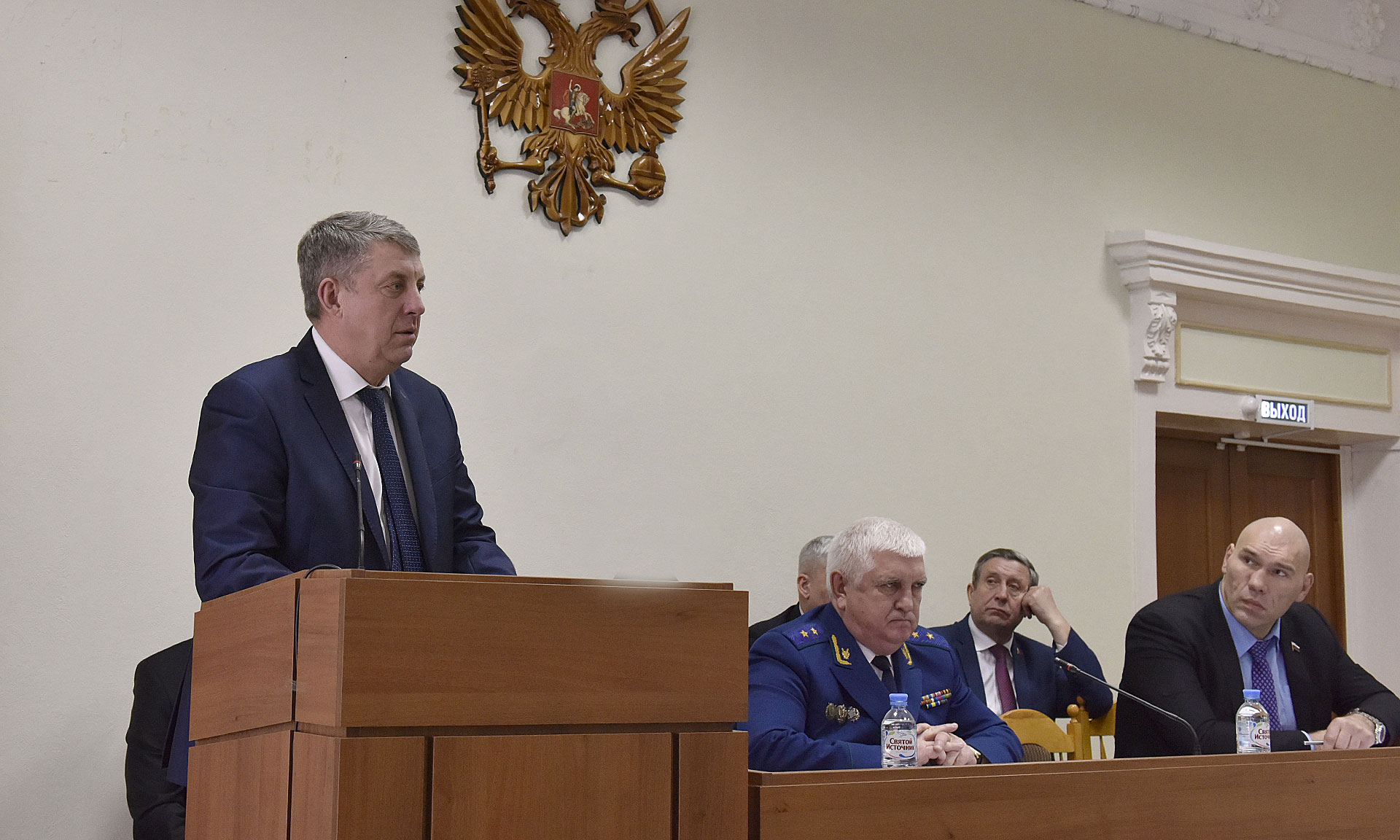 — В современных условиях прокуратура является надежным гарантом конституционного порядка. Один из наиболее значимых вопросов — это соблюдение прав и интересов граждан. Факты задержки зарплат в регионе, нарушение жилищных прав граждан, особенно льготных категорий, упущения в работе ЖКХ должны незамедлительно получать жесткую прокурорскую оценку. Эти же вопросы явились предметом разговора и на итоговой коллегии УМВД России по Брянской области. И наша общая задача — эффективное взаимодействие всех институтов власти на этом направлении деятельности, — сказал он.