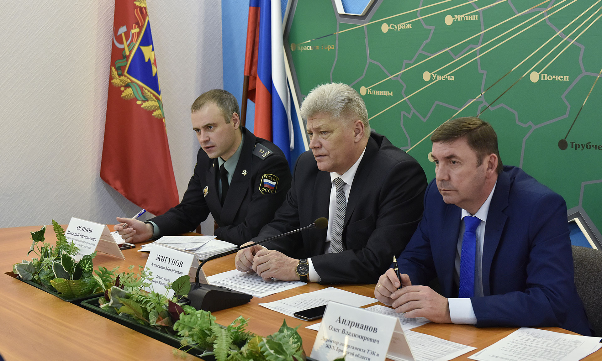 В совещании приняли участие директор департамента ТЭК и ЖКХ Брянской области Олег Андрианов, заместитель руководителя Управления Федеральной службы судебных приставов по Брянской области — заместитель главного судебного пристава Брянской области Виталий Осипов, председатель комитета по ЖКХ Брянской городской администрации Игорь Гинькин, главы администраций районов, руководители управляющих компаний.