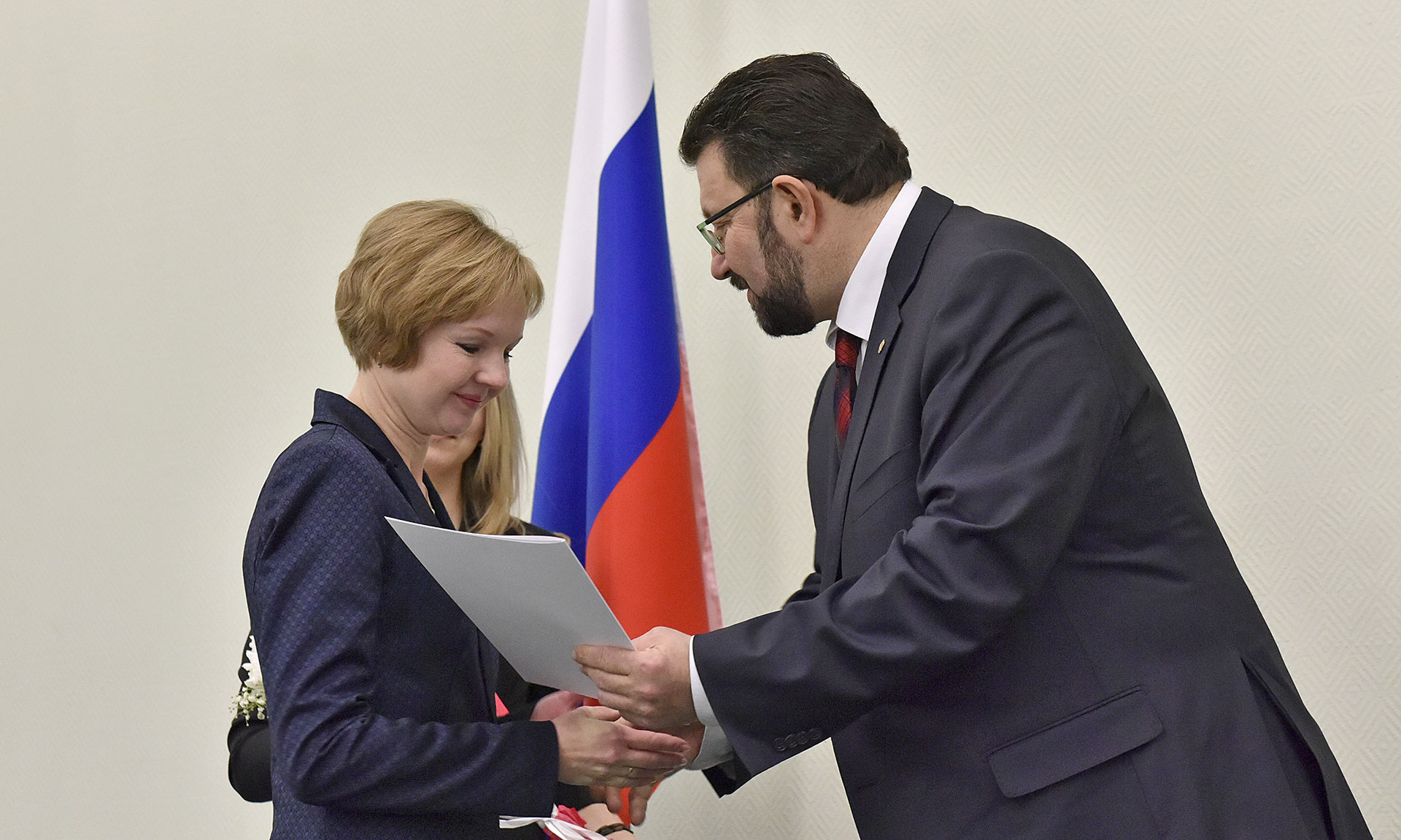 Анатолий Бугаев вручил Почетную грамоту Брянской областной Думы и нагрудный знак руководителю Брянского УФАС России Сергею Ведерникову, а сотрудникам управления — Благодарственные письма Брянской областной Думы.
