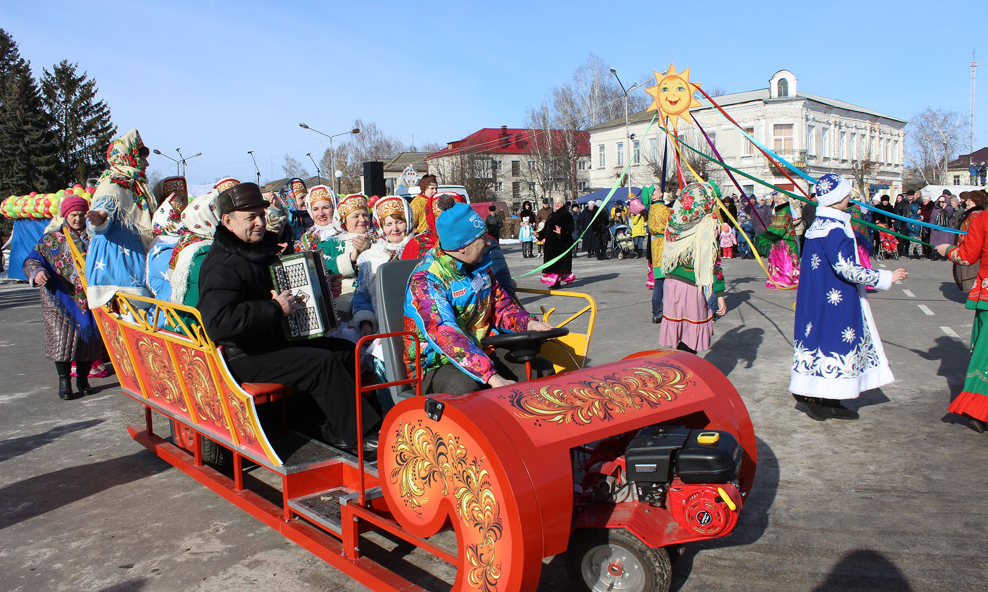 В Почепе праздник стал настоящим театрализованным представлением и назывался он «Здравствуй, Весна-красна!». Праздник был подготовлен работниками культуры и проходил на импровизированной сцене в центре города Почепа, где было очень многолюдно. Многие пришли семьями, с детишками. И погода выдалась чудесная: немножко морозная, но уже по-весеннему солнечная. Собравшиеся с неподдельным интересом смотрели представление с задорными песнями, шутками-прибаутками, охотно водили хороводы, участвовали в проводимых конкурсах, отгадывали загадки, где звучала и такая: «Что на сковороду наливают да вчетверо сгибают», танцевали «Барыню», «Цыганочку». Спортивно-игровые соревнования были представлены такими видами, как гиревой спорт, подтягивание и армрестлинг. Без сомнения, аттракцион «Призовой столб» — наиболее яркое зрелище. В этом году на отполированный руками настоящих удальцов прошлых лет высокий столб (13 м) желающих было много, устраивалась очередь, потому что призы их ждали достойные: живой петух, планшеты, пылесосы, мультиварка, одеяла пуховые и многое другое.