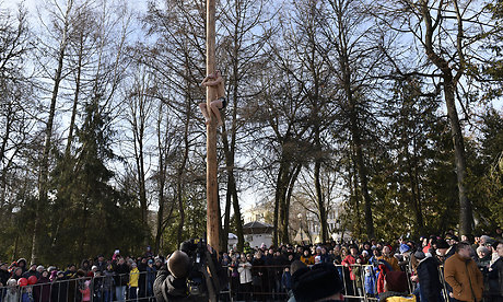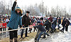 Самым ловким по традиции был дан шанс испытать свои силы на ледяном столбе. Из двух смельчаков до самого верха добрался лишь один, за что и получил памятный подарок. Ну, а кульминацией праздника стало сжигание чучела Зимы.