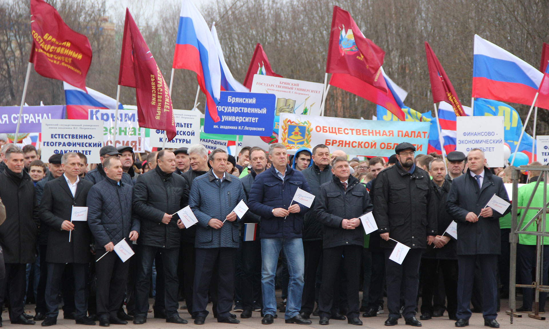 Митинг прошел в рамках фестиваля «Крымская весна» — праздничного мероприятия, в котором приняли участие жители и гости Брянской области, представители трудовых коллективов, молодежь и студенчество, представители региональных отделений политических партий, общественных объединений, национальных диаспор, казачества. Всего — более 14 тысяч человек в областном центре и тысячи людей в районах области.