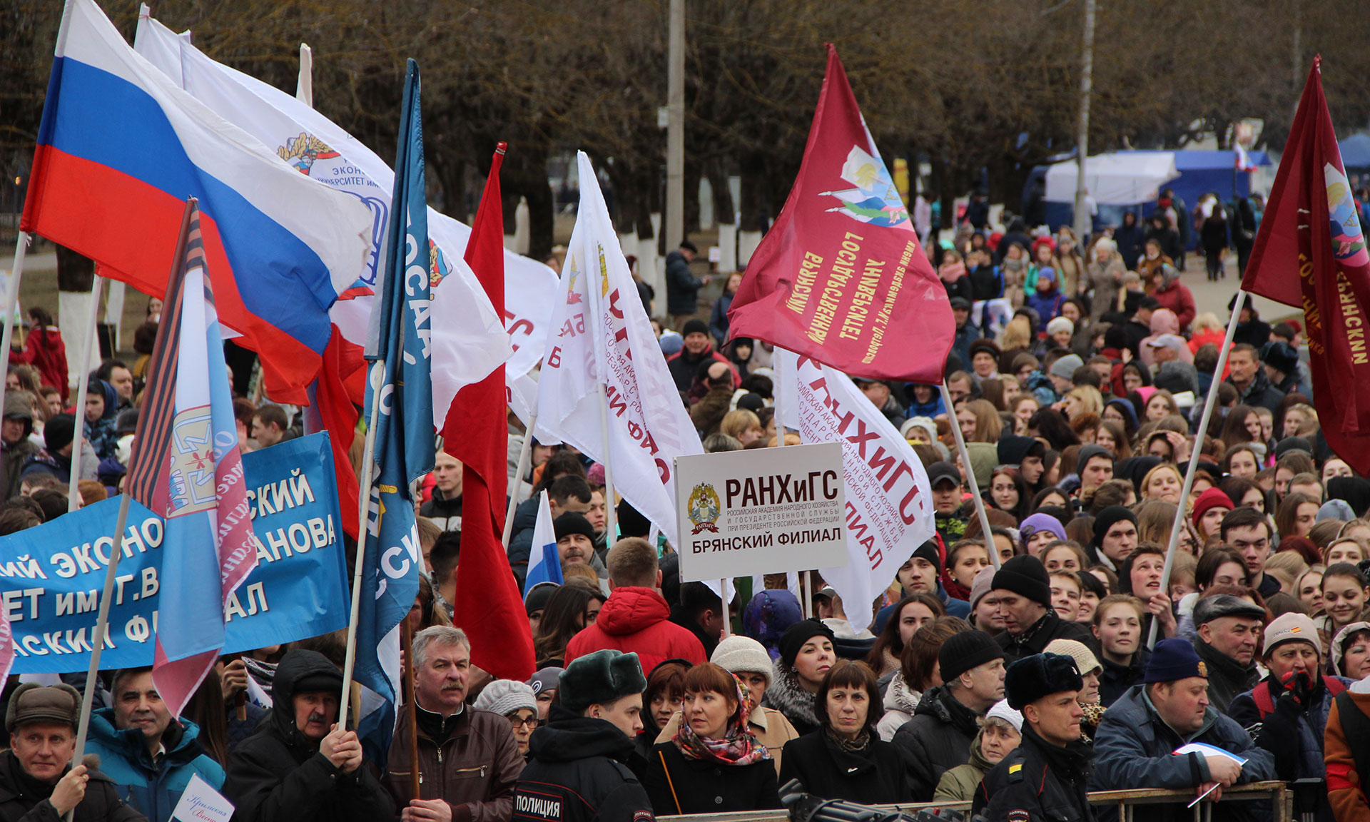 18 марта в Брянске на площади Воинской Славы состоялся митинг «Мы вместе», посвященный годовщине присоединения Крыма к Российской Федерации. Его провела Общественная палата Брянской области.