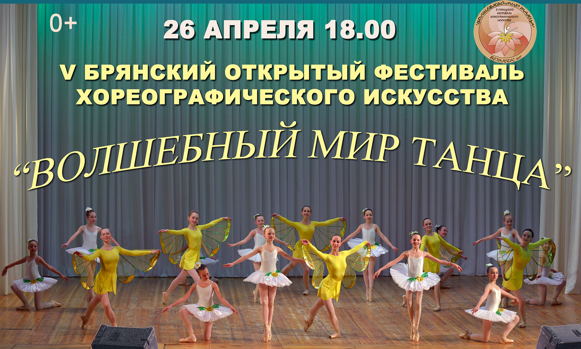 26 апреля, в преддверии празднования Международного дня танца, в концертном зале Детской школы искусств № 1 им. Т. П. Николаевой, состоится V Брянский открытый фестиваль хореографического искусства «Волшебный мир танца».