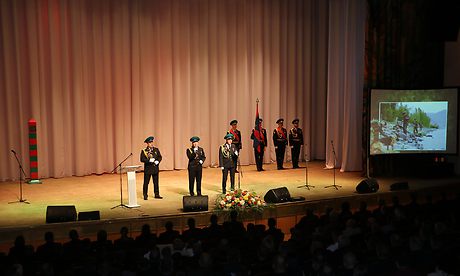 — Друзья, дорогие боевые товарищи. С волнением хочу обратиться к вам. Сегодня мы чествуем сотрудников и ветеранов пограничной службы, говорим слова благодарности друг другу. Пограничники — это особое сообщество людей. Для нас граница это не просто линия на карте — это наша жизнь, это наша судьба. И ее надежная охрана это дело чести каждого, кто свято чти нерушимые законы нашего товарищества, нашего пограничного братства.