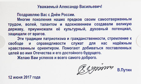 В поздравлении говорится:
