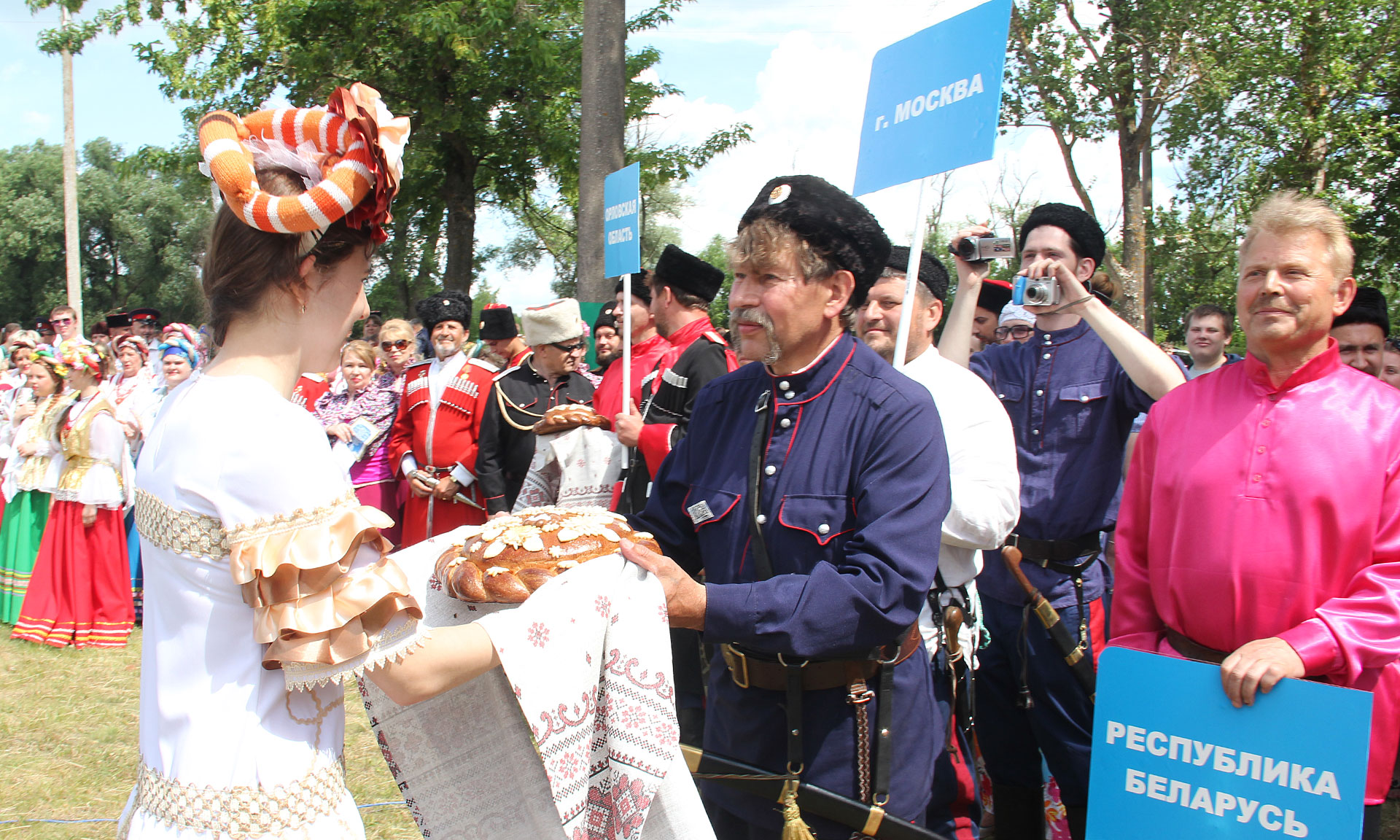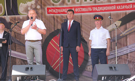 — Разрешите приветствовать вас на нашей Брянской земле, земле воинской, партизанской и трудовой славы! Приветствую наших братьев из Белоруссии, гостей из городов Центрального федерального округа на Втором Международном фестивале традиционной казачьей культуры! Желаю вам радости и счастья на этом празднике и побед на фестивале.