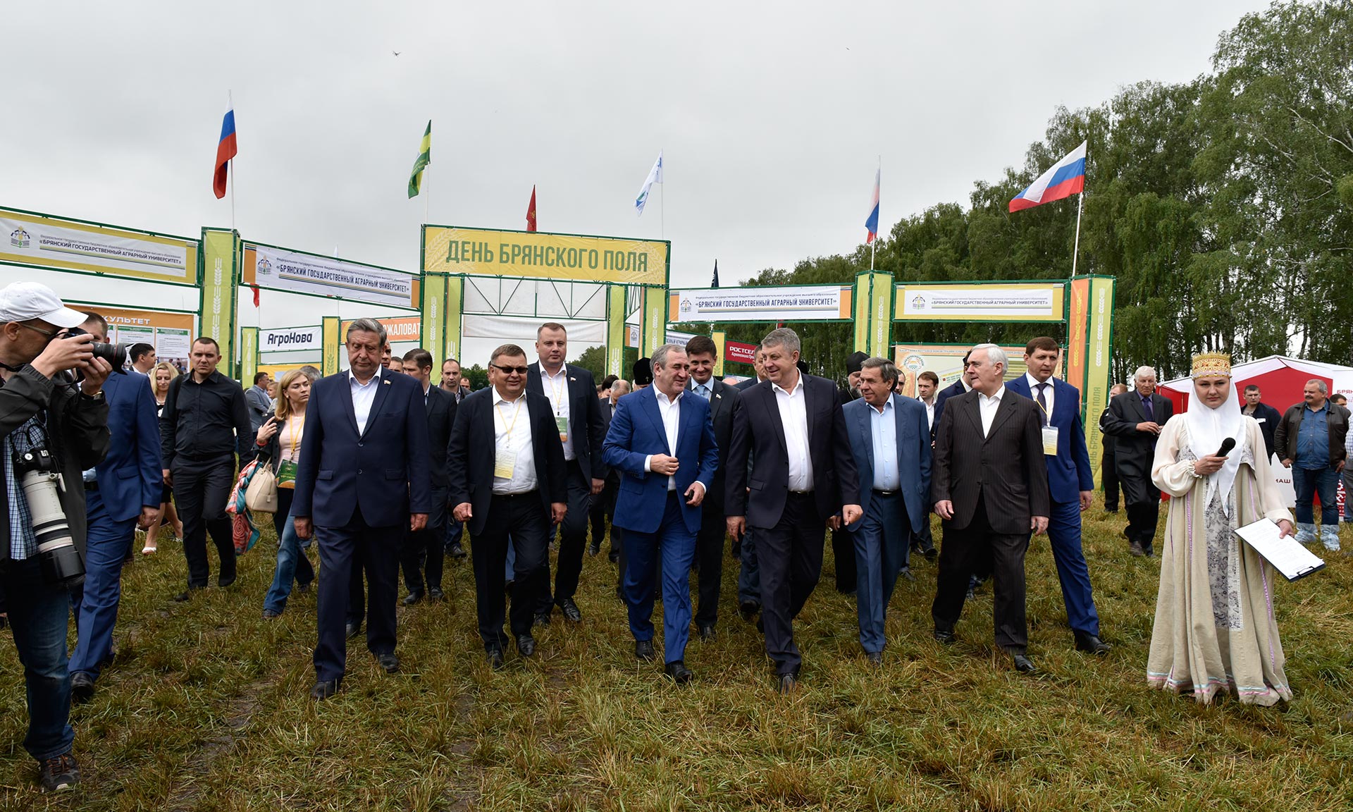 «День брянского поля» — широкомасштабное мероприятие, в котором традиционно принимают участие гости самого высокого уровня. По приглашению Губернатора Александра Богомаза в нем приняли участие Секретарь Генерального совета Партии «Единая Россия», Заместитель Председателя Государственной Думы Федерального Собрания Российской Федерации Сергей Неверов, заместитель полномочного представителя президента РФ в ЦФО Мурат Зязиков, Губернатор Новосибирской области Владимир Городецкий, Председатель Белорусского государственного концерна пищевой промышленности «Белгоспищепром» Александр Забелло, первый заместитель председателя комитета Государственной Думы по экологии и охране окружающей среды Николай Валуев, депутаты Государственной Думы ФС РФ Евгений Ревенко, Виктор Дзюба, Вадим Деньгин, Валентин Суббот, Валентина Миронова, директор Департамента научно-технологической политики и образования Министерства сельского хозяйства Российской Федерации Виталий Волощенко, заместитель председателя Витебского областного исполнительного комитета Виктор Аскерко, руководитель отделения Посольства Республики Беларусь в Смоленске Чеслав Шульга, заместитель директора Департамента растениеводства, механизации, химизации и защиты растений министерства сельского хозяйства Российской Федерации Евгений Купреев, заместитель директора административного департамента Министерства сельского хозяйства Российской Федерации Владимир Кондрашкин, председатель профсоюза работников агропромышленного комплекса Российской Федерации Наталья Агапова, председатель правления РОО «Брянское Землячество» Татьяна Наумова.