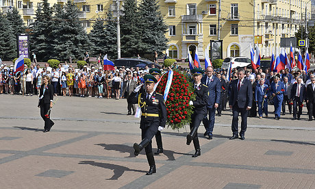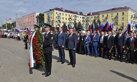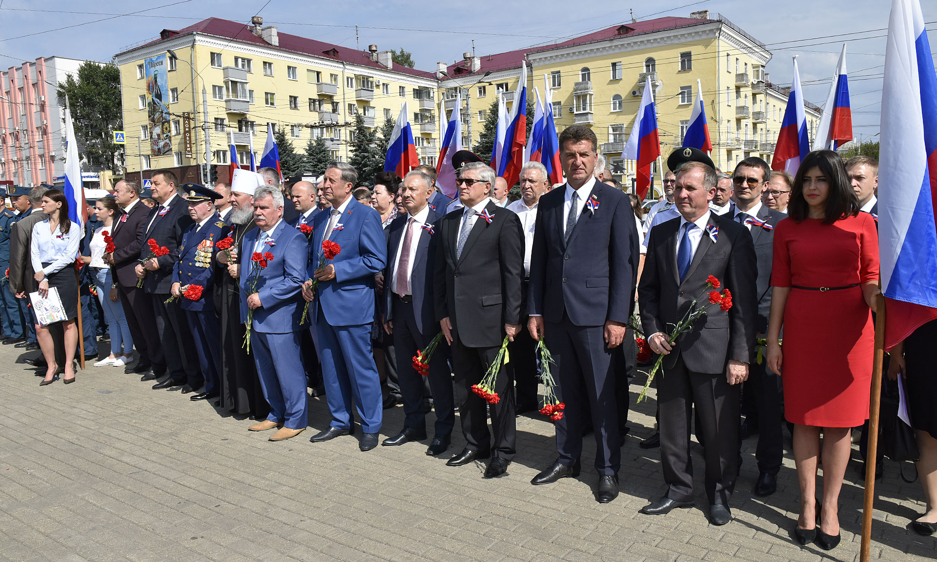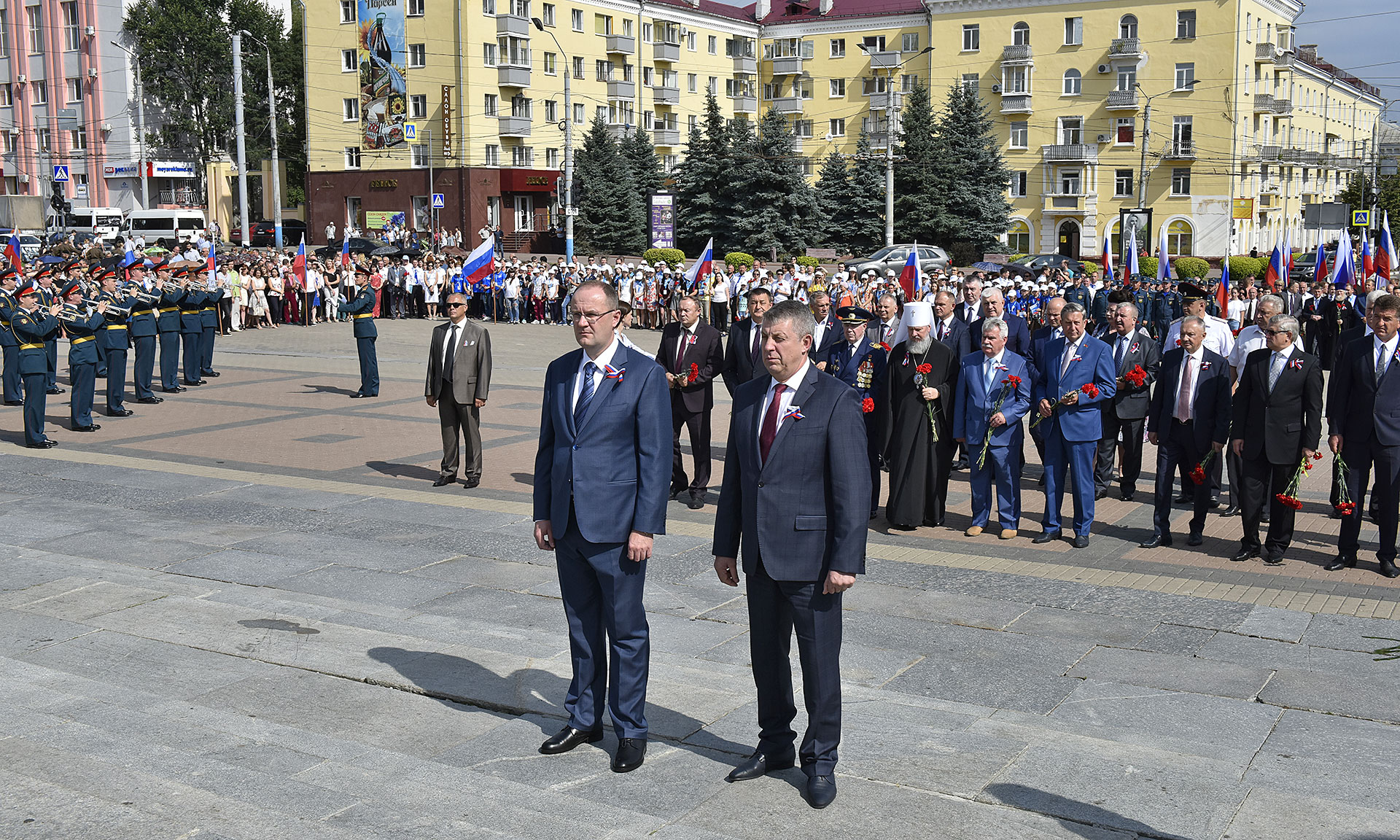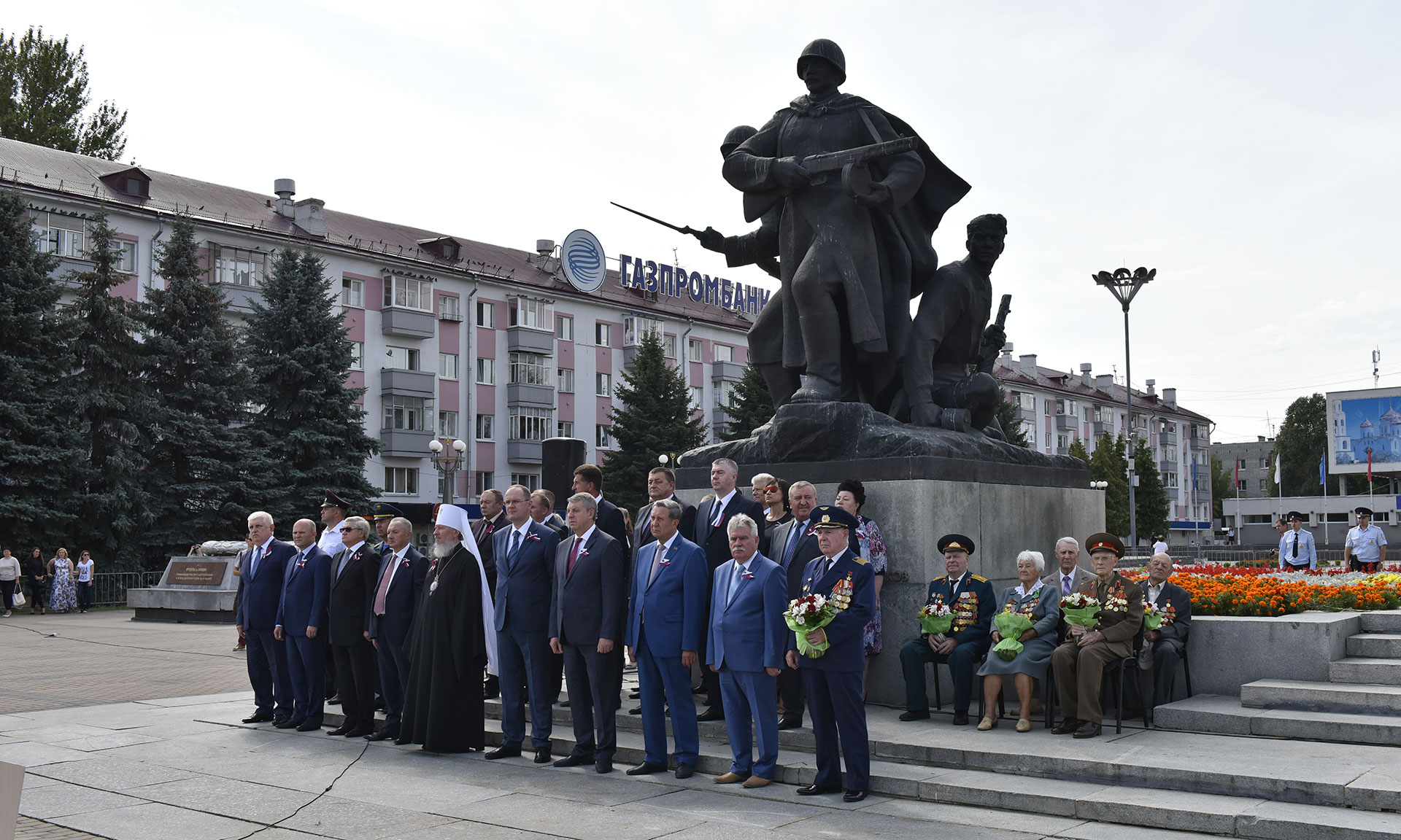 Цветы к памятнику возложили председатель Брянской областной Думы Владимир Попков, главный федеральный инспектор по Брянской области Афанасий Киселев, Его Высокопреосвященство митрополит Брянский и Севский Александр, глава города Брянска Александр Хлиманков, глава Брянской городской администрации Александр Макаров, представитель Брянского областного Совета ветеранов войны, труда, Вооруженных Сил и правоохранительных органов, подполковник медицинской службы Александр Мазилов, Герой Советского Союза Иван Кашин, Герой России Александр Постоялко, председатель Брянской областной общественной организации ветеранов войны и военной службы Василий Бударин, вице-губернатор Брянской области Александр Резунов, заместители Губернатора, председатель Брянского областного суда Евгений Быков, начальник Пограничного управления ФСБ России по Брянской области Сергей Станкевич, начальник Главного управления МЧС России по Брянской области Вадим Уваркин, военный комиссар Брянской области Андрей Соломенцев, начальник Управления Федеральной службы войск национальной гвардии Российской Федерации по Брянской области Константин Обушев, начальник Департамента ПАО «Газпром» Александр Беспалов, заместитель начальника Департамента — начальник Управления развития общественных связей ПАО «Газпром» Роман Сахартов, заместитель начальника Управления развития общественных связей Департамента ПАО «Газпром» Инна Данилова, заместитель генерального директора ООО «Газпром трансгаз Москва» по управлению персоналом и корпоративной защите Евгений Безбородкин, руководители территориальных федеральных органов государственной власти в Брянской области.