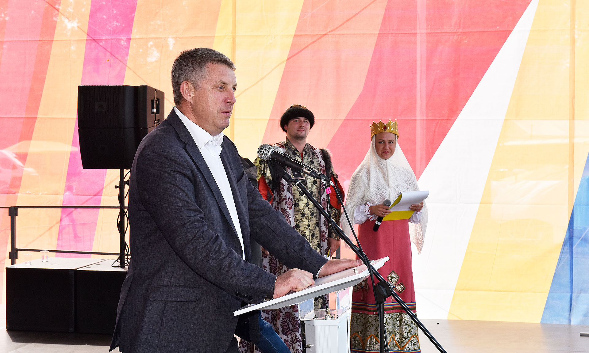 — Дорогие друзья! Каждый из нас был участником разных праздников. Но праздник празднику — рознь. Нынешний праздник -особый, это своего рода рапорт Брянщины Родине о том, что мы могли сделать и что мы сделали. И мы с вами это увидели собственными глазами, что сегодня может вопреки всему, наша Брянская область развивается. Мы многое можем. И Андреевский луг, на котором проходит это знаменательное мероприятие, никогда, на моей памяти, не был таким многолюдным. Это действительно рапорт о сделанном жителями Брянской области. Спасибо вам всем за тот вклад, который вы внесли в процветание Брянской области. Мы сегодня понимаем, что перспективы нашего региона мы с Губернатором Александром Богомазом реализуем в полной мере.