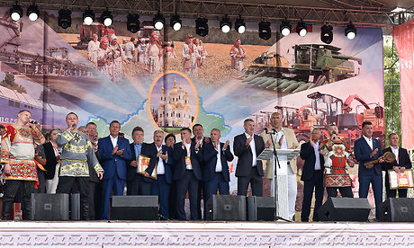 Губернатор и участники церемонии подведения итогов Свенской ярмарки исполнили песню о родной земле