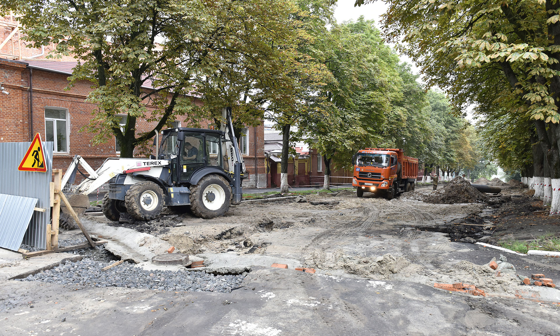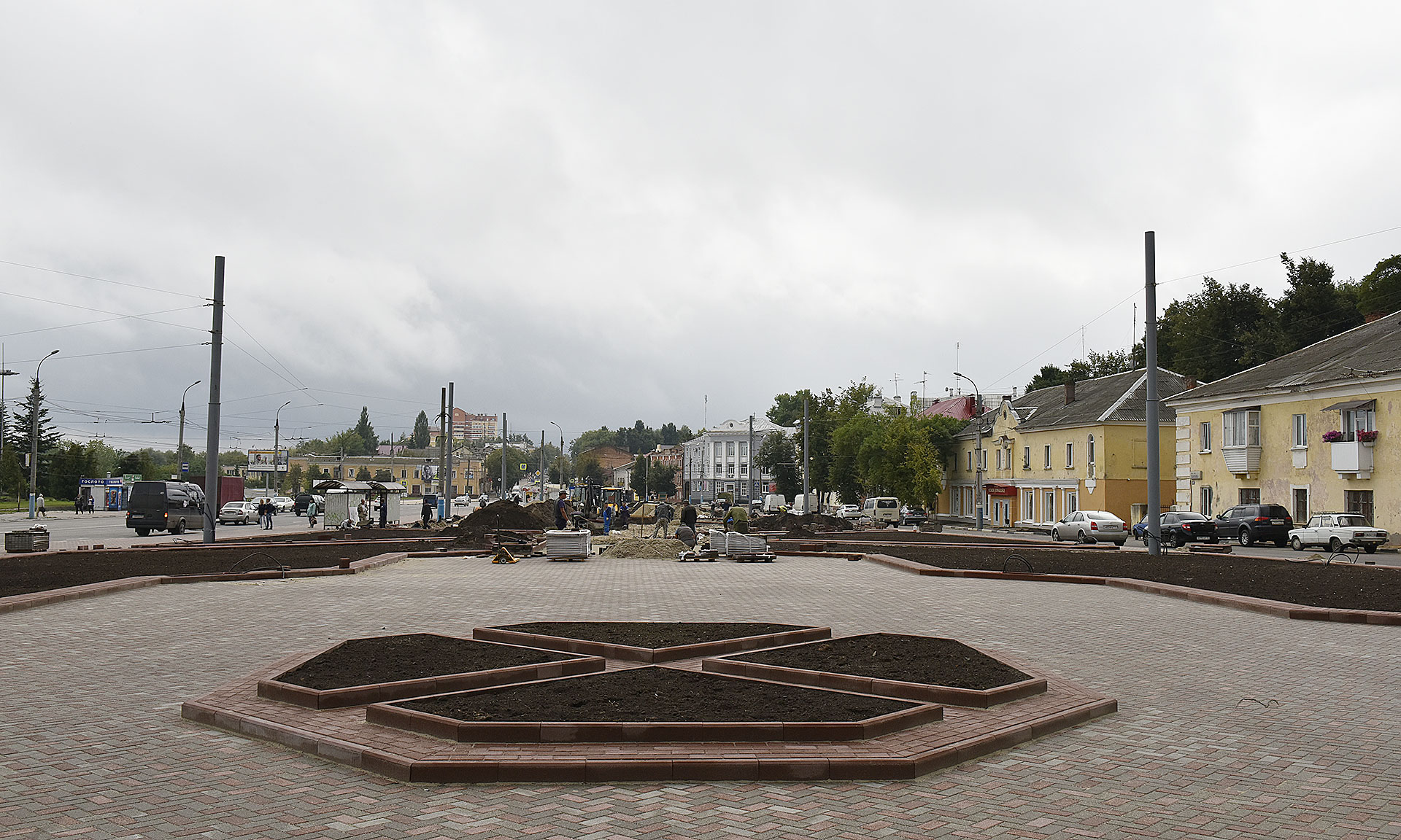 В Семеновском сквере тротуарной плиткой замостили часть пешеходных дорожек. Забетонировали новые троллейбусные опоры, при этом кабель, который ранее неопрятно размещался над сквером, теперь проложили под землей и вывели на установленные опоры. Сейчас рабочие занимаются благоустройством места захоронения Игната Фокина. Напротив памятника обустраивают двухуровневую клумбу, параллельно укладывают грунт для формирования газонов, продолжают разбивать пешеходную зону.