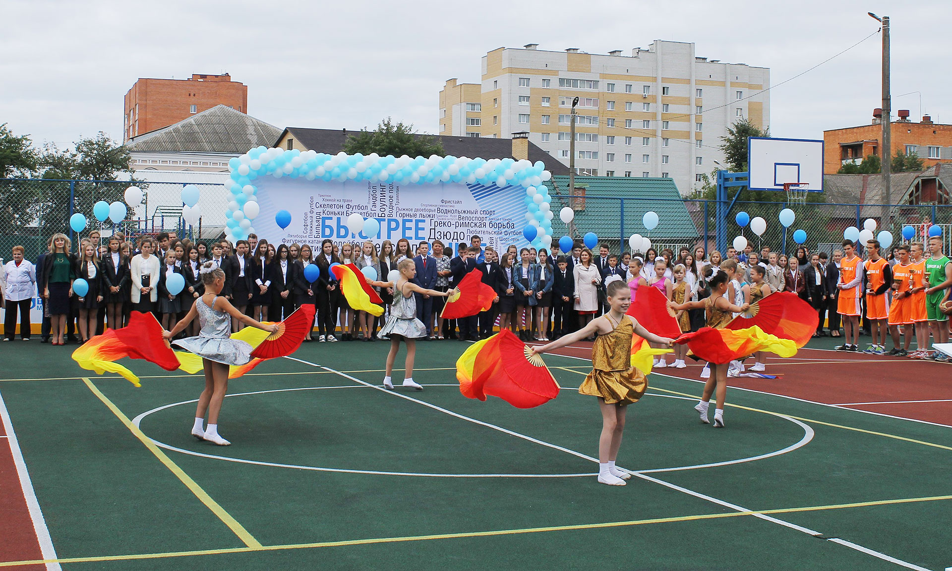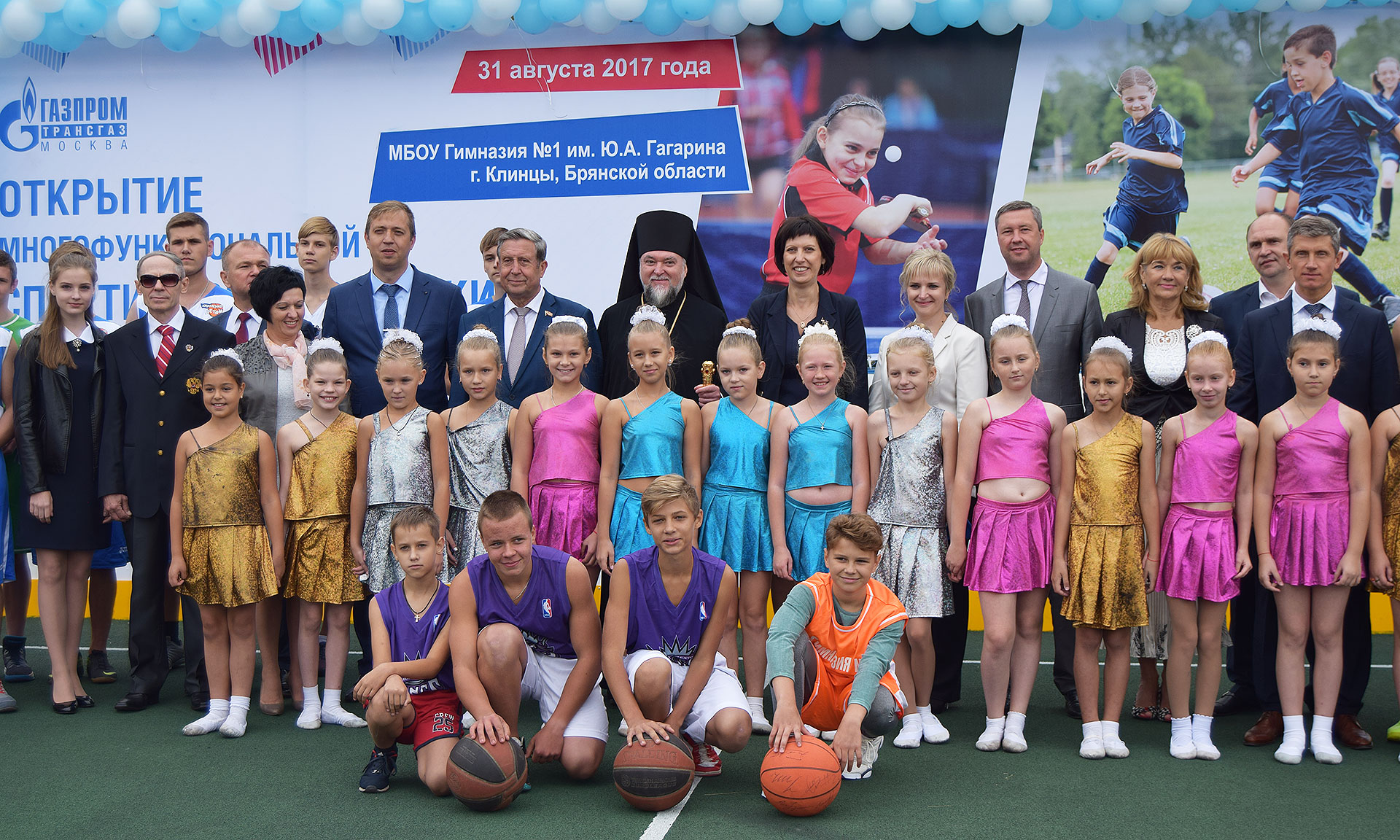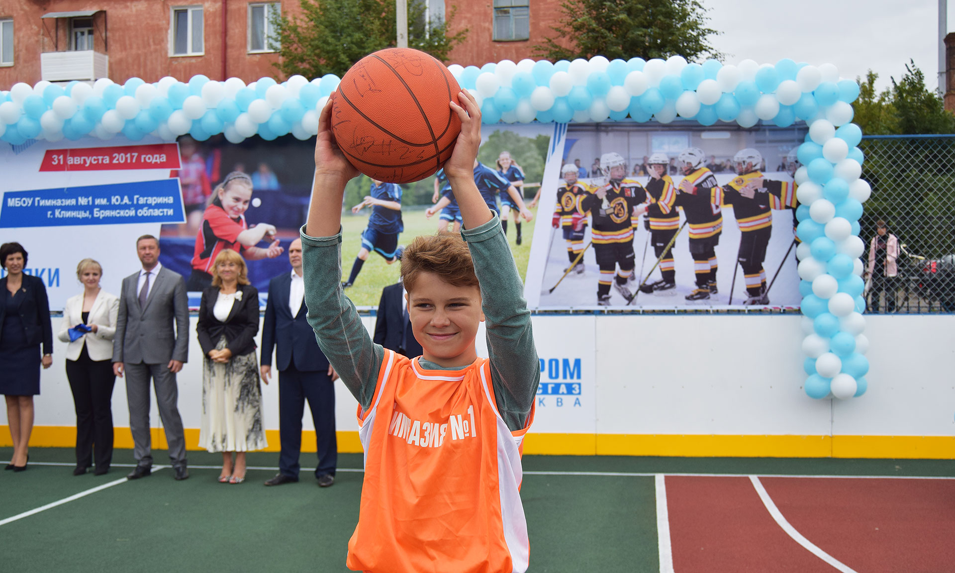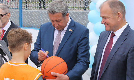 В завершении мероприятия честь перерезать ленточку по случаю открытия многофункциональной спортивной площадки досталась директору гимназии № 1 Алине Пчеленок, чемпиону-паралимпийцу Валерию Купчинскому и молодому перспективному спортсмену, учащемуся 7 класса в гимназии Веньямину Пожарскому. На первом баскетбольном мяче, заброшенном в корзину на новом спортивном объекте города Клинцы, все почетные гости оставили свои автографы.
