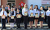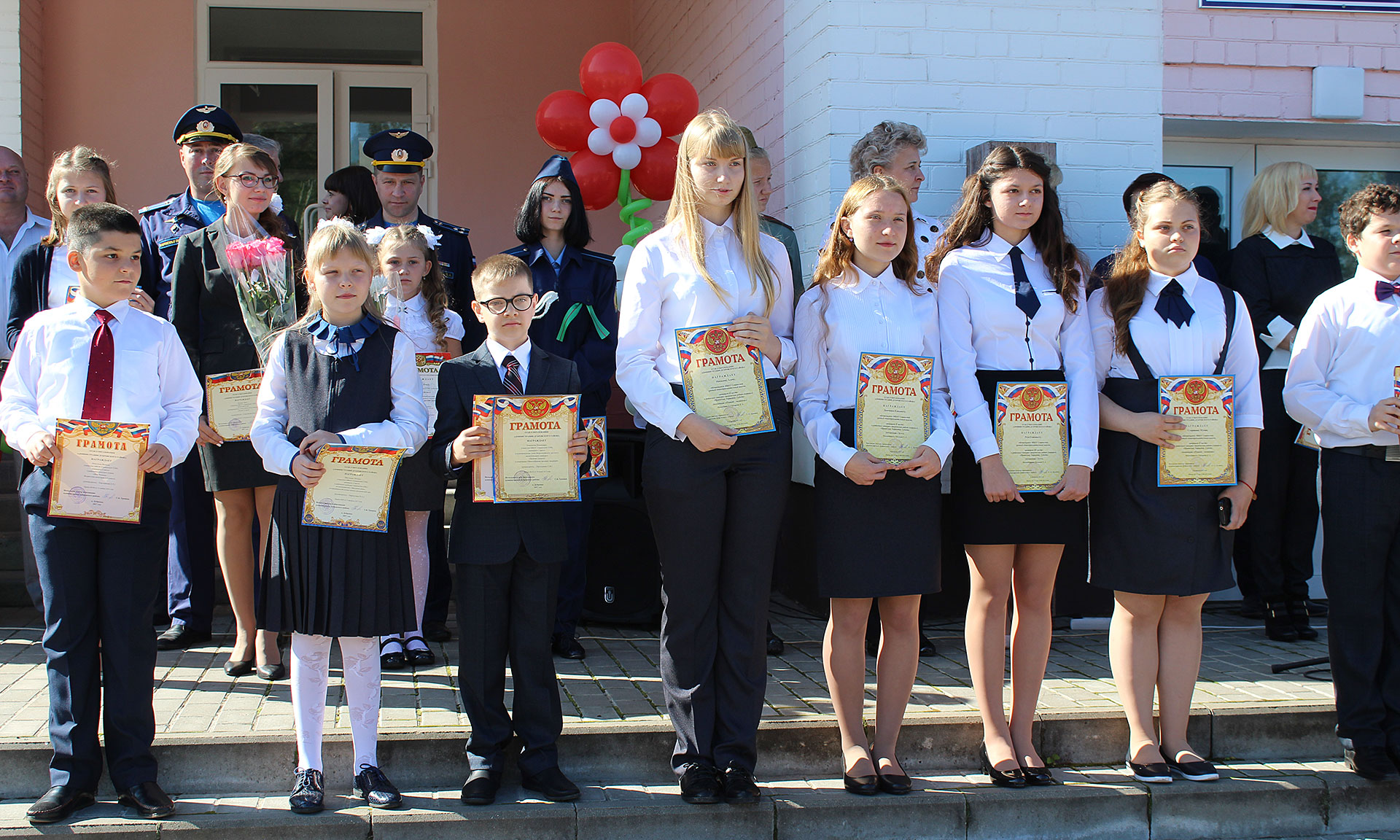 В заключение в небо были выпущены разноцветные шары, символизирующей флаг Российской Федерации, — в знак удачи в новом учебном году.