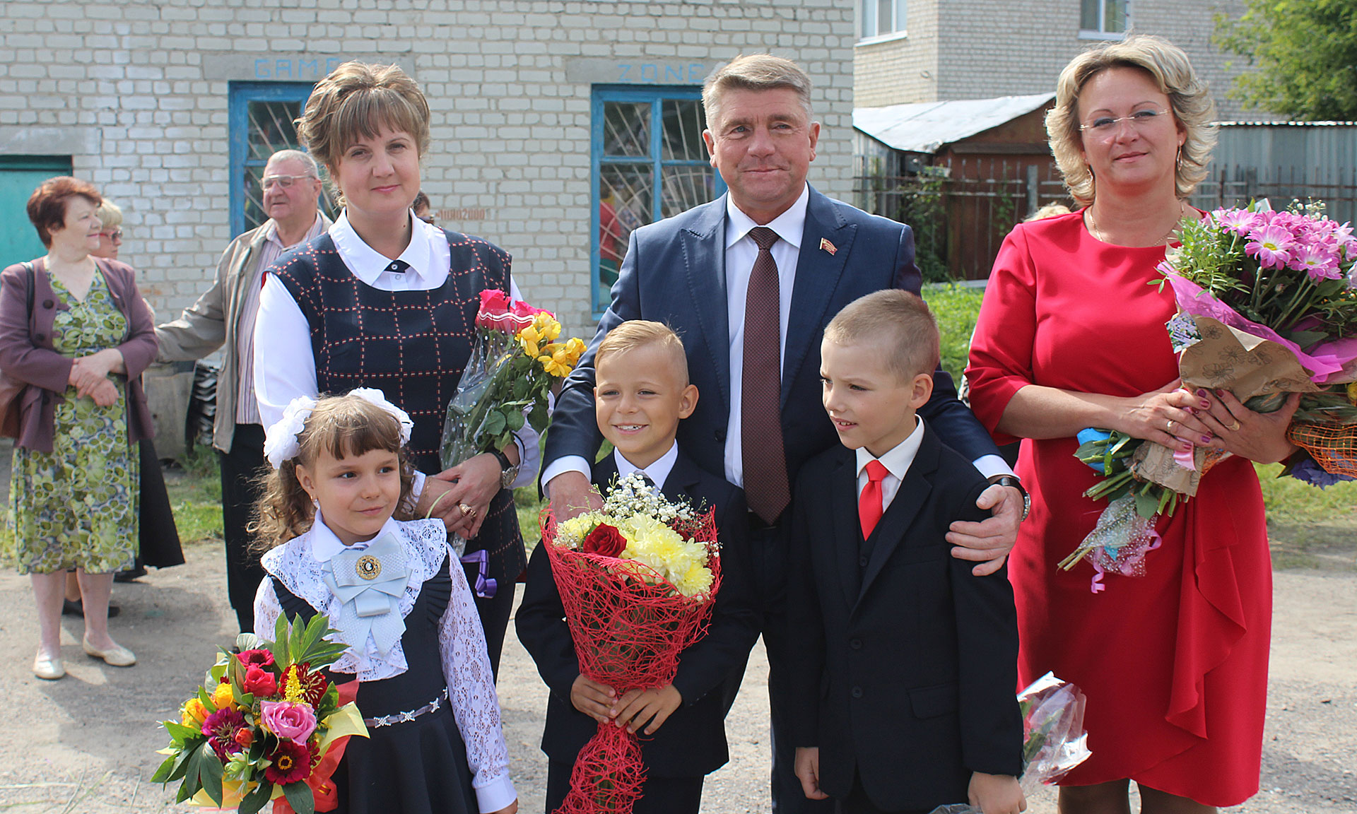 Среди почётных гостей, присутствующих на торжественной линейке в школе № 1, были глава администрации района Сергей Жилинский и начальник управления ветеринарии Брянской области Николай Шлык.