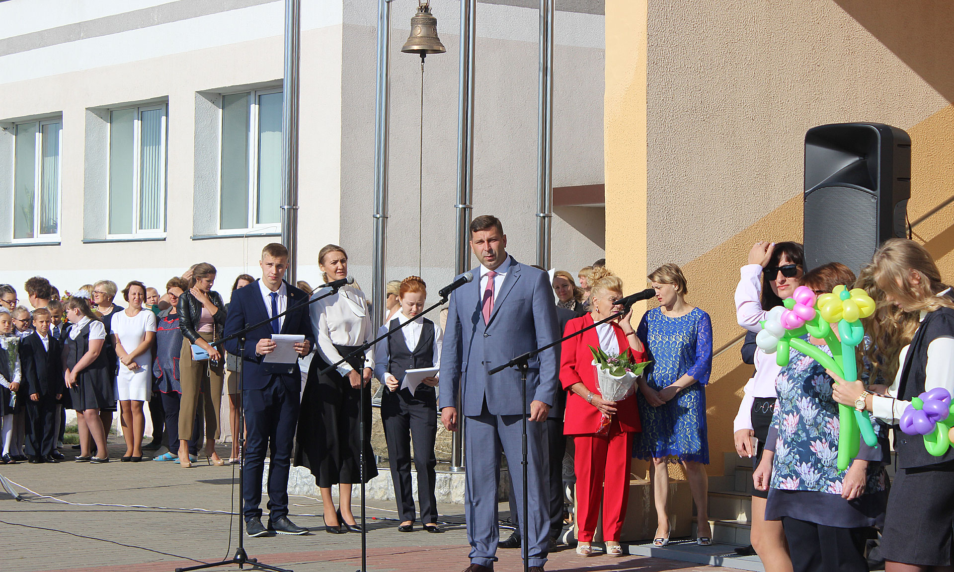В приветственном слове Сергея Жилинского прозвучали поздравления с началом нового учебного года для учителей, учеников и их родителей. Он пожелал школьникам успеха в приобретении знаний, новых побед в конкурсах, олимпиадах и спортивных соревнованиях. Учителям — благодарных учеников, родителям — терпения.