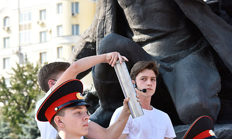 — Уважаемые гости, дорогие ветераны, жители Брянска и Брянщины, я всех сердечно приветствую на этой площади и поздравляю с этим историческим событием, которое совершается пред нашими глазами. Мы отправляем послание грядущим потомкам, в котором просим их, взирая на подвиг нашей жизни, на то, что мы так горячо служим нашей Родине, мы просим из также хранить заветы своих дедов и отцов, быть верными, и с любовью верно служить своему народу!