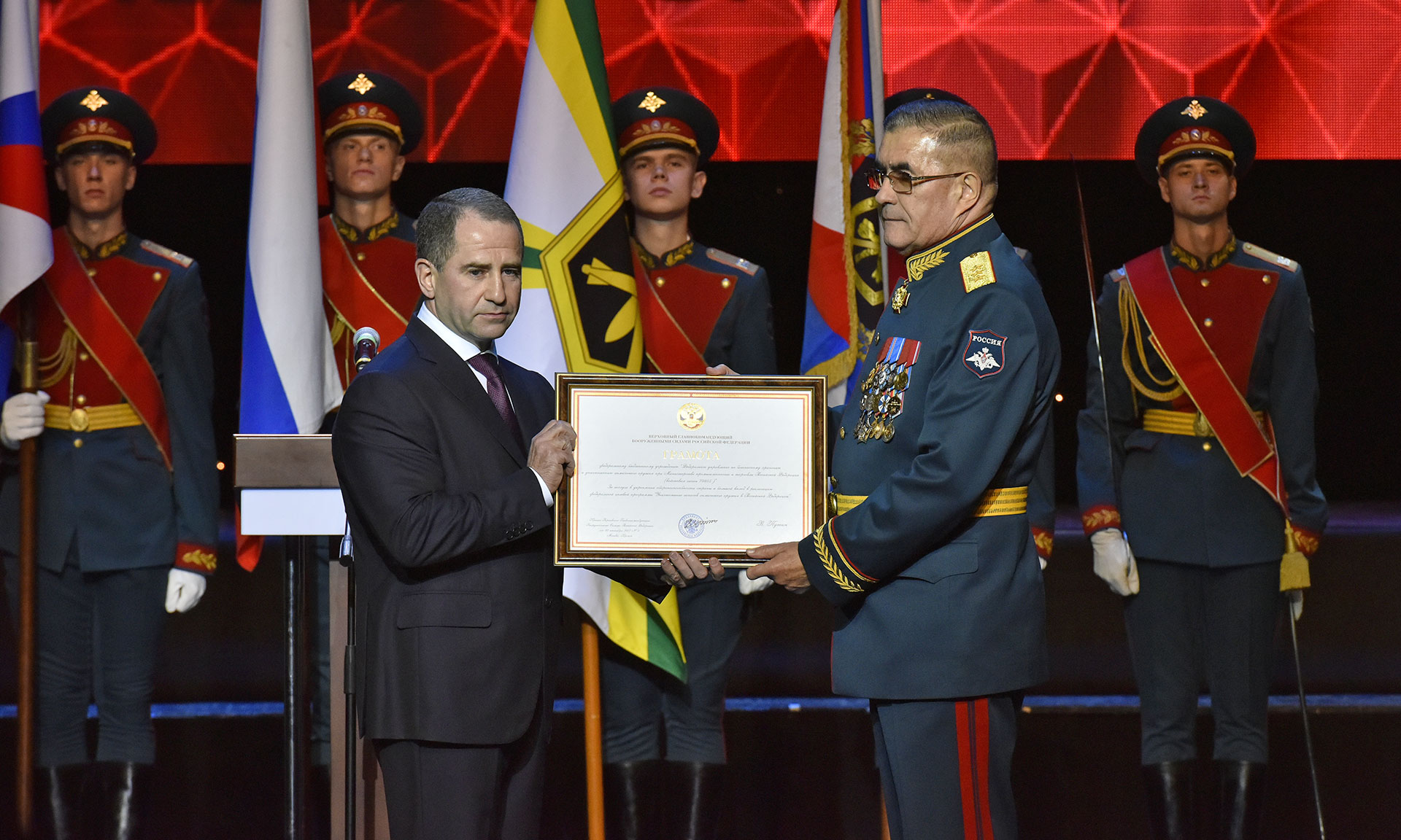 Мероприятие состоялось в Большом зале Центрального академического театра Российской Армии в Москве. Начальник Федерального управления по безопасному хранению и уничтожению химического оружия Валерий Капашин вручил Губернатору Брянской области Александру Богомазу почетный знак «За выдающиеся заслуги и личный вклад в области химического разоружения».