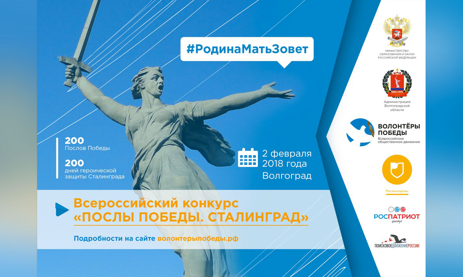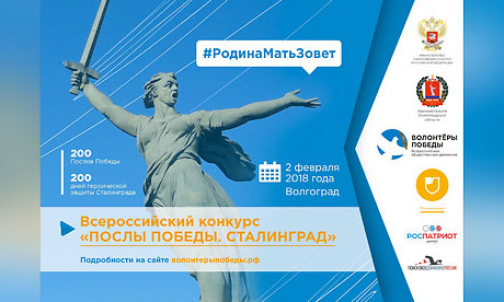 Во исполнение Указа Президента от 18 февраля 2017 г. № 68 «О праздновании 75-летия разгрома советскими войсками немецко-фашистских войск в Сталинградской битве» на территории Российской Федерации стартовал Всероссийский конкурс «Послы Победы. Сталинград» (далее — конкурс). В конкурсе могут принять участие социально активные молодые люди в возрасте от 18 до 30 лет, а также руководители и представители волонтерских некоммерческих организаций и объединений, инициативных добровольческих групп. По итогам конкурса 2 февраля 2018 г. в Волгограде соберутся 200 лучших добровольцев страны для обеспечения волонтерского сопровождения основных мероприятий, посвященных празднованию Победы в Сталинградской битве.