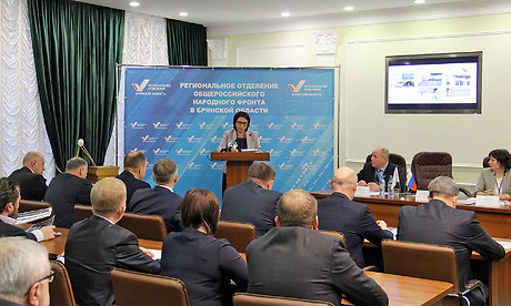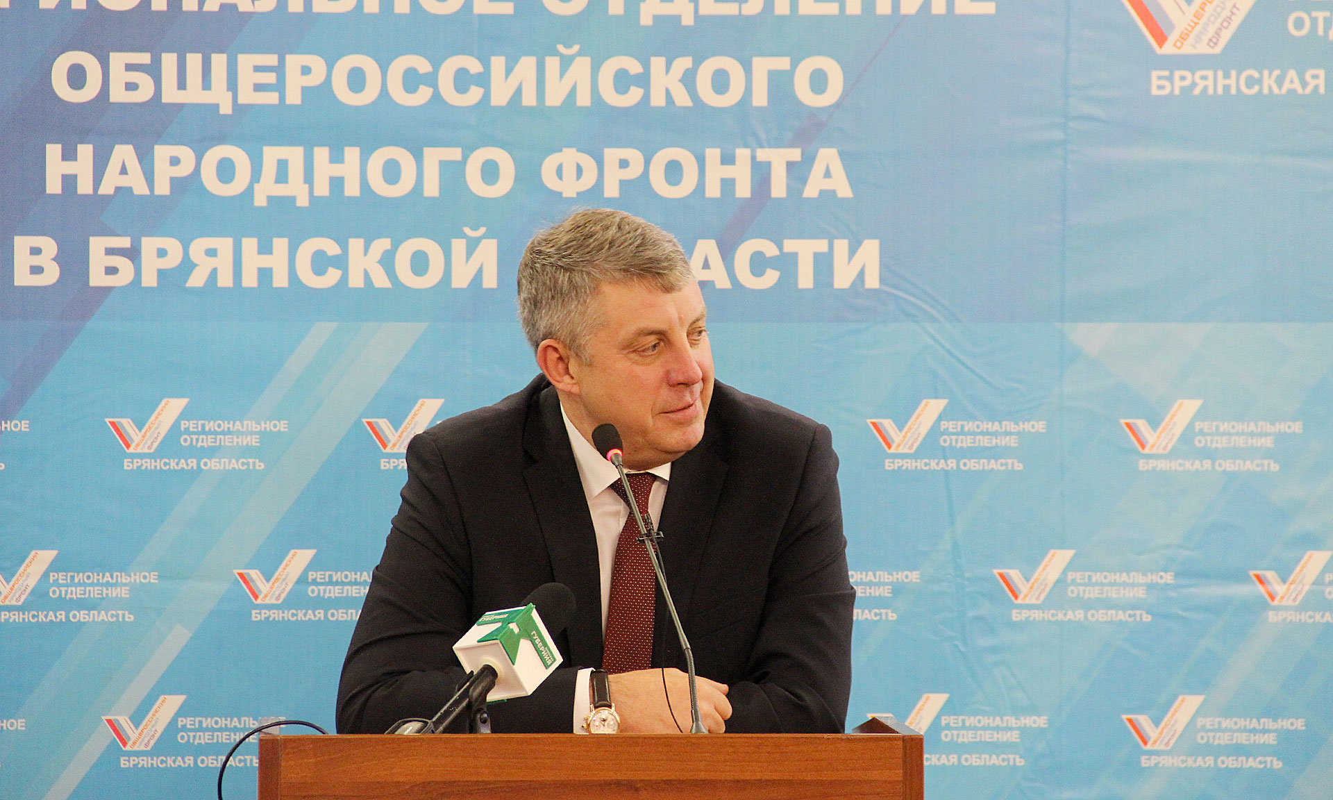 Глава региона обратился к участникам конференции как к своим коллегам — он входил в Центральный штаб ОНФ, организовывал Общероссийский народный фронт Брянской области, был сопредседателем брянского отделения.