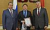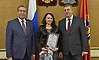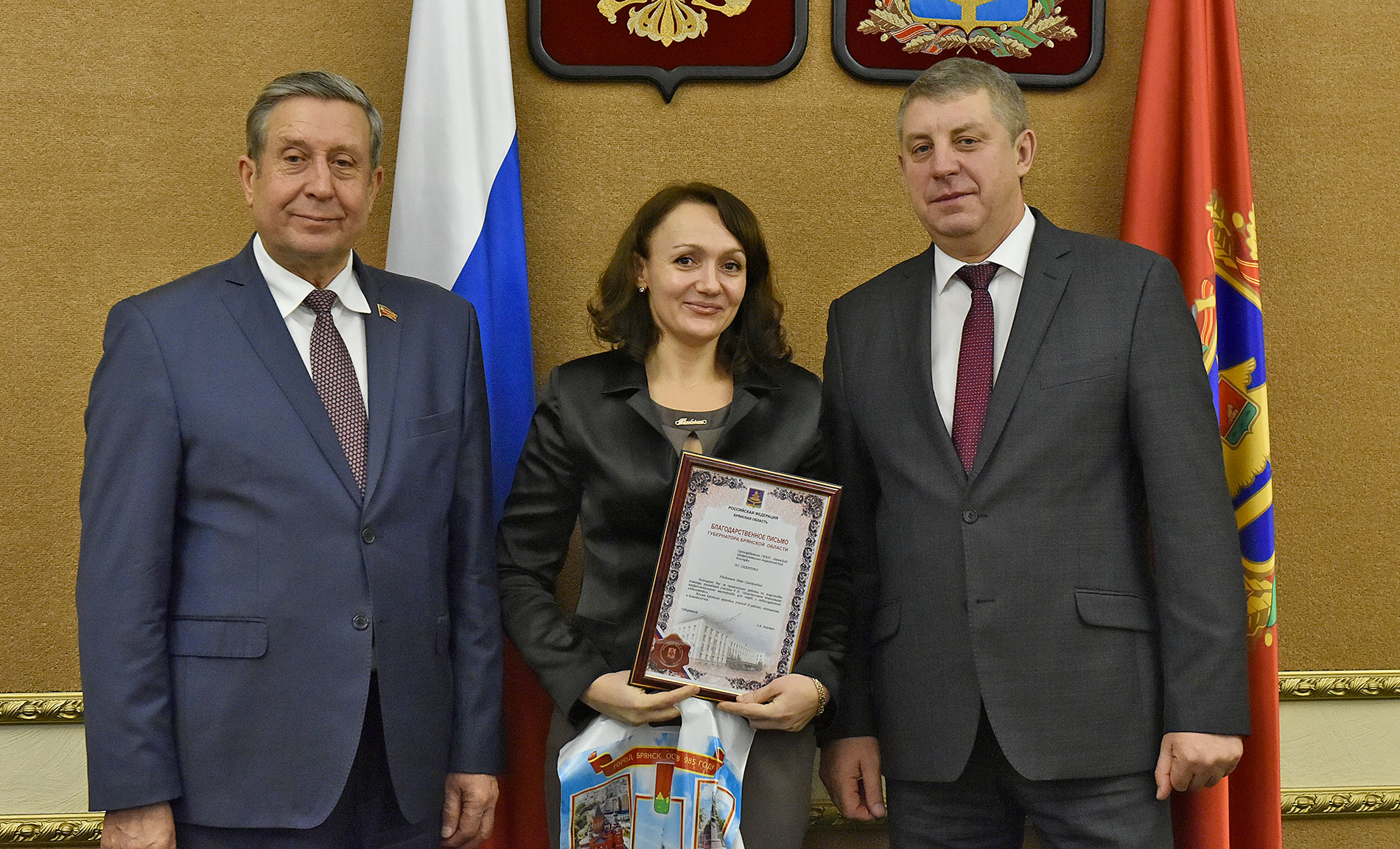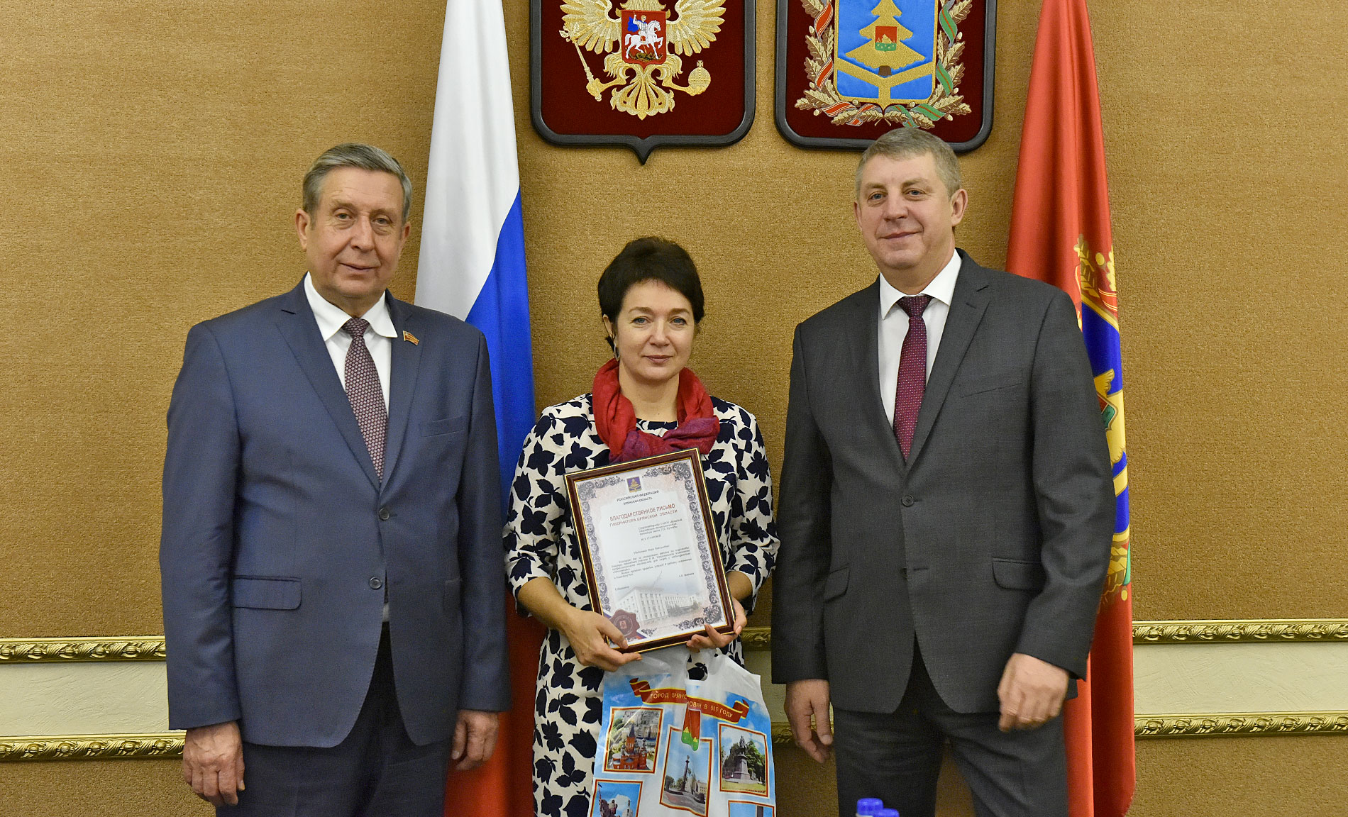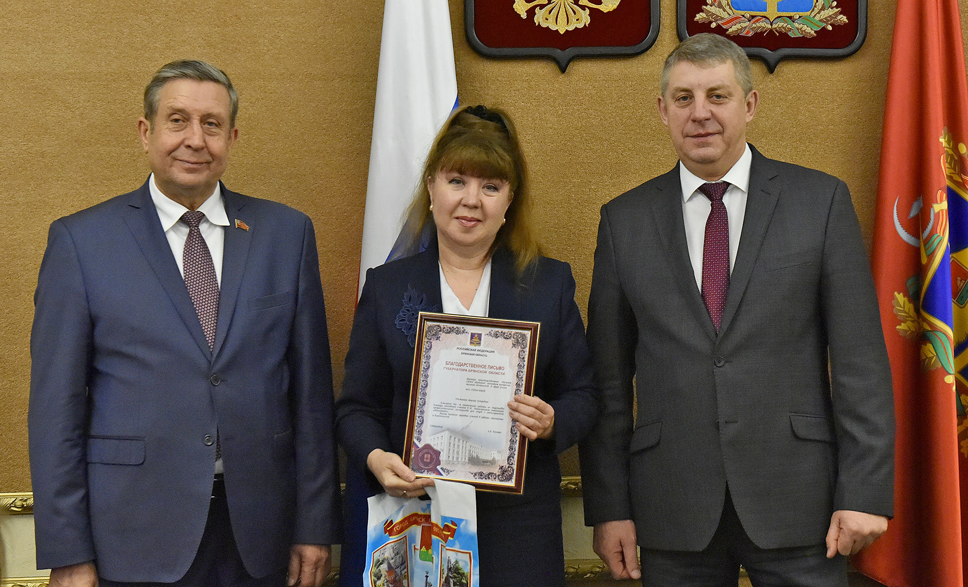 Губернатор Брянской области вручил членам региональной команды, принявшей участие III национальном чемпионате профессионального мастерства для людей с инвалидностью «Абилимпикс», Благодарственные письма и подарки — их получили и студенты, и педагоги. По окончании церемонии Виктор Странадко и Екатерина Рак подарили Александру Богомазу вымпел «Абилимпикса».