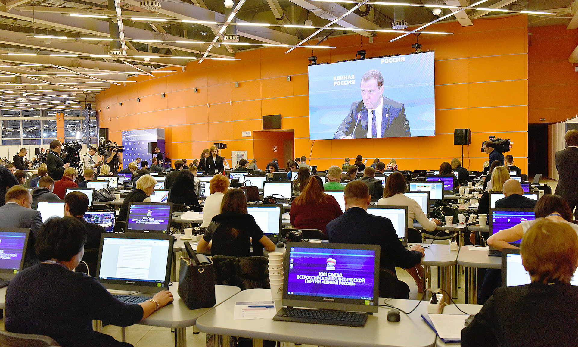 В работе Съезда принимают участие около 2500 участников и гостей, среди которых 455 делегатов от 85 региональных отделений «Единой России», причем 405 из них — представители первичных отделений Партии.