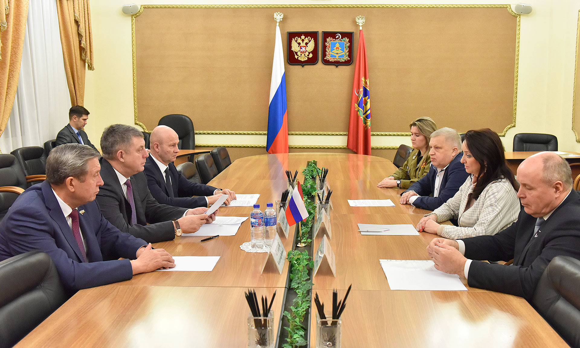 Во встрече приняли участие председатель Брянской областной Думы Владимир Попков, заместитель Губернатора Брянской области Александр Коробко, руководитель регионального исполкома Общероссийского народного фронта в Брянской области Лариса Третьякова, сопредседатели Регионального штаба Общероссийского народного фронта в Брянской области Валерий Родоманов и Виктор Андреев, комиссар Брянского регионального отделения Молодежной общероссийской общественной организации «Российские студенческие отряды» Дарья Прошкина.