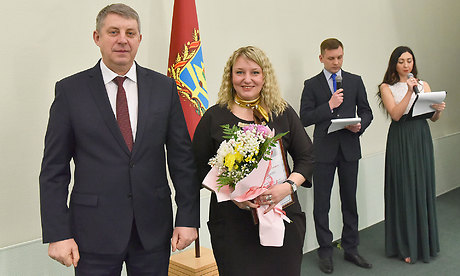 Александр Богомаз вручил награды победителям областного творческого конкурса журналистов на соискание премий Губернатора Брянской области. Благодарственным письмом Губернатора Брянской области и денежной премией в размере 100 тысяч рублей награждены корреспондент телерадиокомпании «Брянская губерния» Елена Бочкарева, главный редактор Жуковской районной газеты Брянской области «Жуковские новости» Олег Михеев, шеф-редактор службы радиовещания ГТРК «Брянск» Екатерина Трофимова.