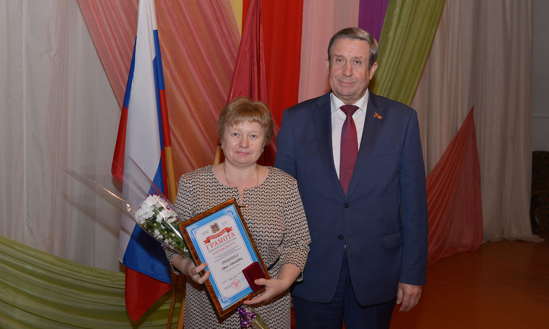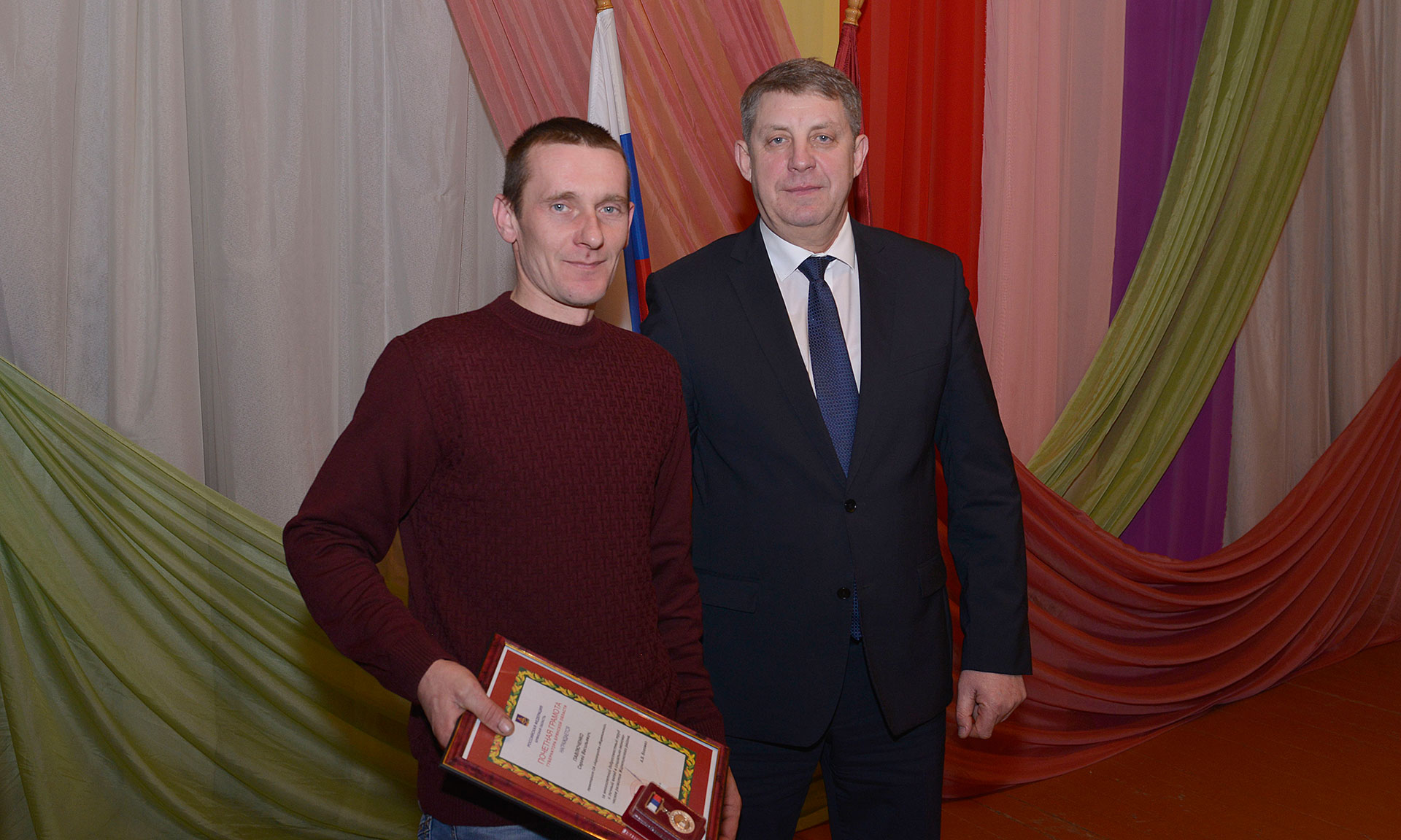 В завершение встречи Губернатор Брянской области Александр Богомаз и председатель Брянской областной Думы Владимир Попков отметили лучших работников района заслуженными наградами.