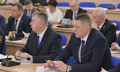 Заместитель начальника отдела УФСБ России по Брянской области Евгений Атрошко, заместитель начальника Московской железной дороги Мухарбек Озиев и директор департамента промышленности, транспорта и связи Брянской области Александр Дубинчин рассказали о состоянии антитеррористической защищенности объектов транспортной инфраструктуры региона и исполнении департаментом промышленности, транспорта и связи Брянской области решений АТК Брянской области.