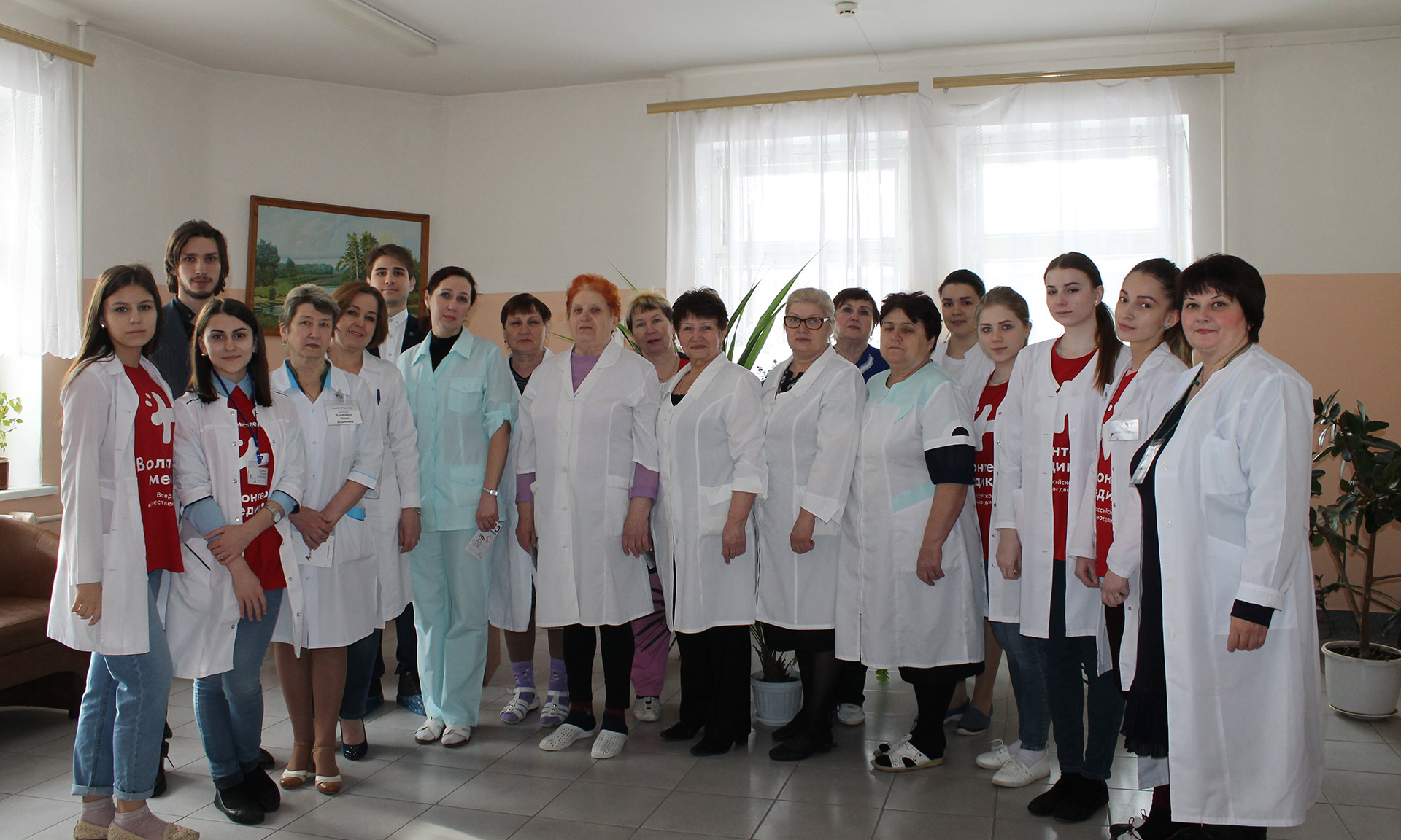 Ранним утром 7 марта волонтеры-медики посетили госпиталь для ветеранов войн, где подарили цветы и поздравительные открытки медицинскому персоналу и пациенткам. Юноши в парадных костюмах не только вручали букеты, но и читали стихи, чем очень порадовали ветеранов. Поздравления продолжились в Брянской городской поликлинике № 4 и Брянской городской больнице № 2.