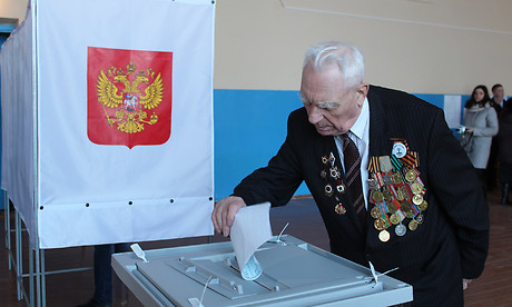 92-летний ветеран Великой Отечественной войны, житель города Стародуба Михаил Наумович Черкай пришел на свой избирательный участок сразу же после его открытия. Для Михаила Наумовича выборы это не только традиция (ветеран голосовал уже более 50 раз), а гражданский долг: