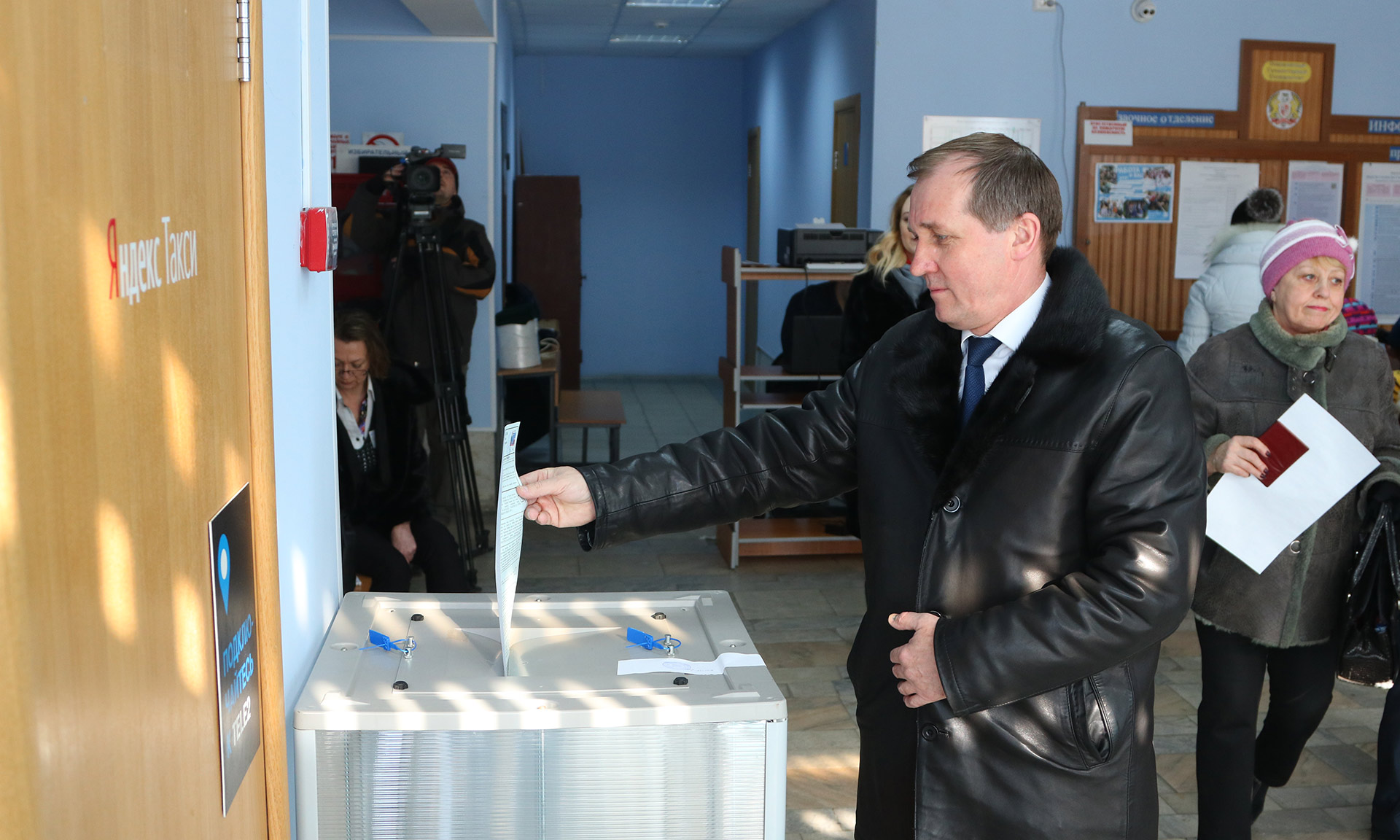 Глава Брянской городской администрации Александр Макаров проголосовал на избирательном участке № 103 в здании Брянского филиала НАЧОУ ВПО «Современная гуманитарная академия» в Советском районе города Брянска.