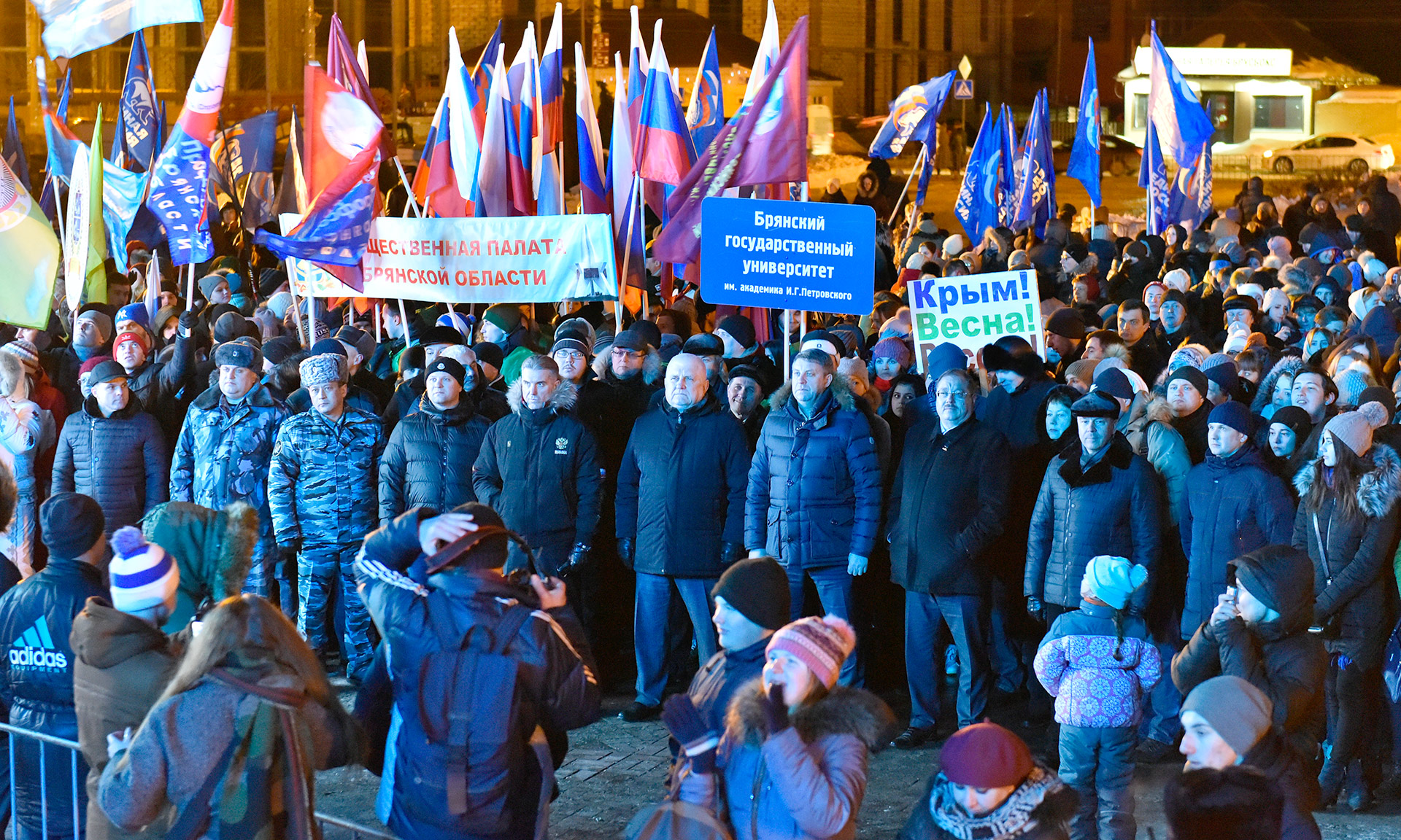 18 марта на площади Воинской Славы Центрального парка культуры и отдыха имени 1000-летия Брянска состоялся митинг-концерт, посвященный годовщине воссоединения Крыма с Россией. Торжественные митинги, посвященные воссоединению Крыма с Россией, также прошли в городах и районах Брянской области.