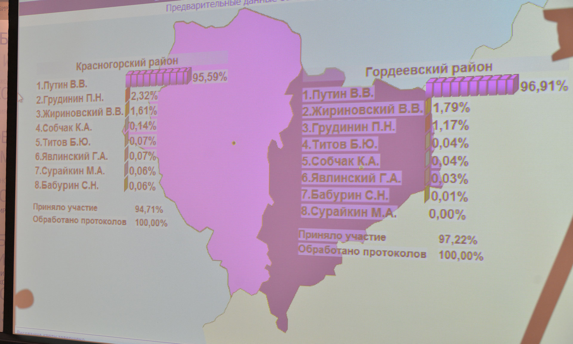 Председатель Избирательной комиссии Брянской области подчеркнула, что явка на этих президентских выборах в регионе была прецедентно высокой, одной из самых высоких по стране, то есть люди целенаправленно шли выбирать своего президента и знали о том, что от их голоса зависит будущее страны. Традиционно наибольшую активность проявили жители Гордеевского, Красногорского, Навлинского районов.