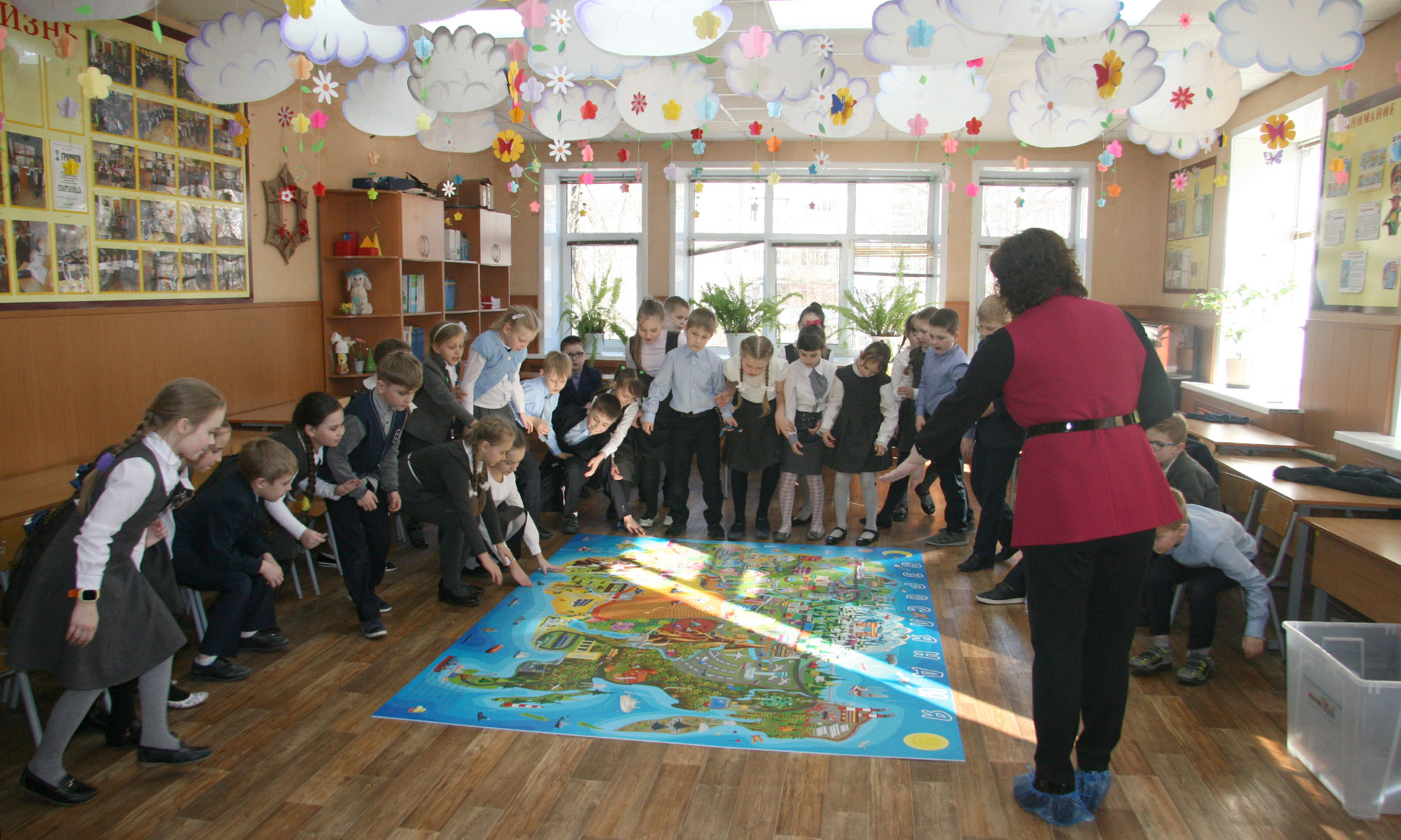 Школьникам была представлена игровая развивающая игра «Взросляндия. В мире профессий», представляющая собой напольную площадку 2×3 метра из элементов-пазлов с изображением всех отраслей: сельского хозяйства, транспорта, промышленности и других.